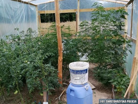Policjanci z opatowskiej jednostki Wydziału Kryminalnego na terenie jednej z posesji w gminie Ożarów znaleźli uprawę krzewów konopi, z których, jak się okazało, wytwarzane były środki odurzające. Mundurowi ustalili, że rosnące wśród pomidorów i papryki krzewy należą do 29 letniego mieszkańca gminy. Ponadto w miejscu zamieszkania właściciela krzewów zabezpieczono dodatkowo ok. 65 gramów suszu zidentyfikowanego jako marihuana. Mężczyzna został zatrzymany i usłyszał zarzuty. Prokurator rejonowy w Opatowie zastosował wobec zatrzymanego środki zapobiegawcze w postaci dozoru policji oraz poręczenie majątkowe.
