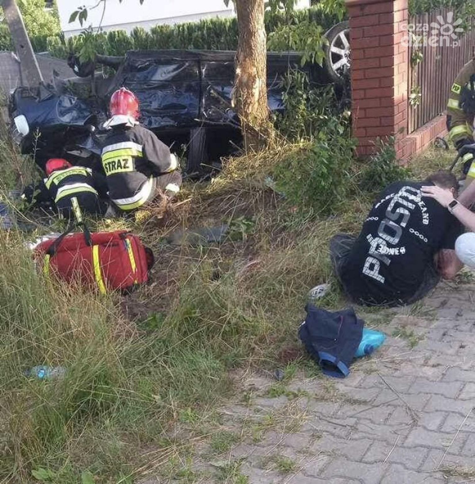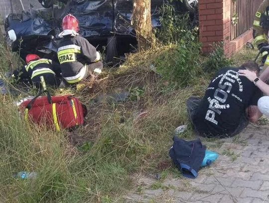 Na miejscu okazało się, że osobowe auto wypadło z drogi, dachowało i uderzyło w płot a potem w drzewo. W samochodzie była jedna nieprzytomna osoba. Drugą przytomną, 23-letniego mężczyznę ratownicy znaleźni poza autem. Niestety działania resuscytacyjnie wobec mężczyzny, który był zakleszczony w aucie nie przyniosły skutku, ratownicy stwierdzili śmierć.