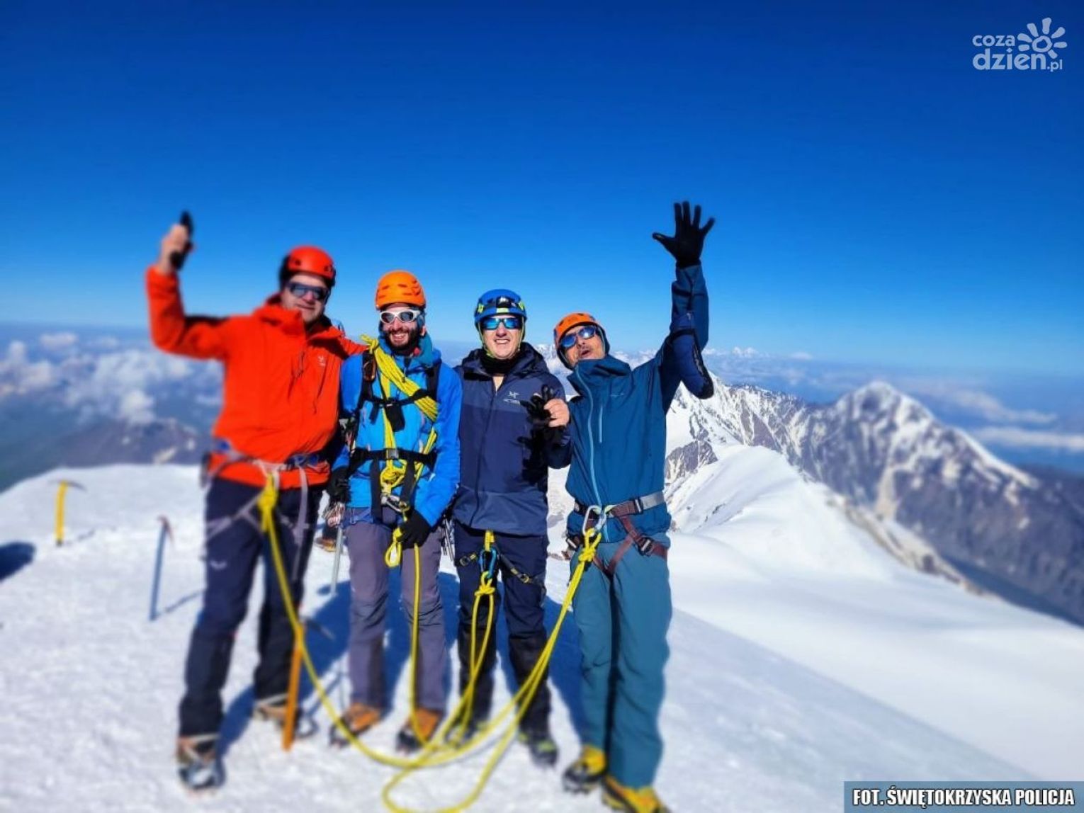 Uporem wykazał się w ubiegłą środę 26 lipca br. podinsp. Rafał Kulasek. Funkcjonariusz na co dzień pełniący służbę w Komendzie Wojewódzkiej Policji w Kielcach zameldował się na szczycie góry Kazbek w Gruzji. Wejście na wysokość 5054 m n.p.m zajęło mu kilka dni. Choć pogoda początkowo nie była jego sprzymierzeńcem i kilkukrotnie zmuszony był suszyć ubrania, nie zrezygnował z realizacji planu. Gdy tylko nadarzyła się okazja, o godzinie 2.30 ruszył w górę, by krótko po 9 stanąć na szczycie. To pierwszy pięciotysięcznik Rafała, jak sam zapewnia – nie ostatni.