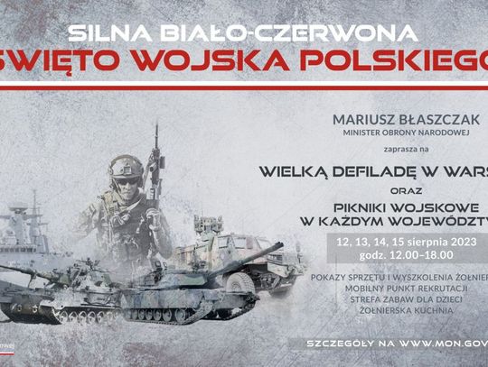 Po 3 latach powraca największa defilada Wojska Polskiego. Centralna uroczystość rozpocznie się 15 sierpnia o godz. 14:00 na warszawskiej Wisłostradzie. W asyście 2000 żołnierzy (z wszystkich Rodzajów Sił Zbrojnych) zostanie zaprezentowane 200 jednostek sprzętu wojskowego i 92 statki powietrzne.