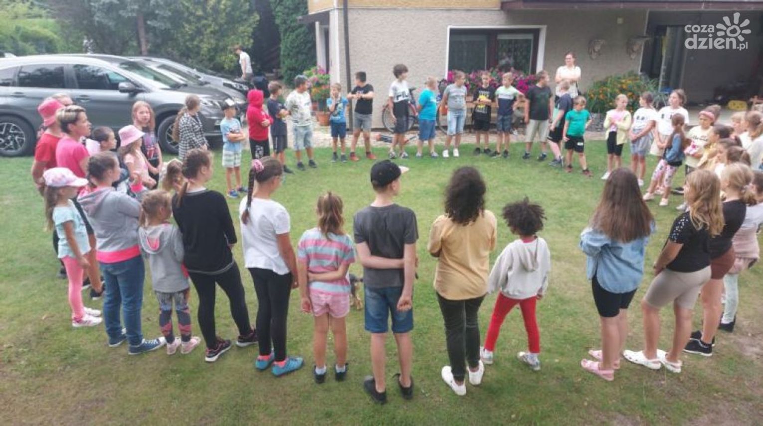 Właściciele obiektu państwo Sylwia i Paweł Kamińscy wspaniale ugościli około 60 dzieci. Pomimo deszczowej pogody zabawa była przednia. Kącik plastyczny, boisko do piłki nożnej, nartobiegi, dynamiczny taniec integracyjny oraz przepyszne kiełbaski to tylko część atrakcji, jaka czekała na dzieci.