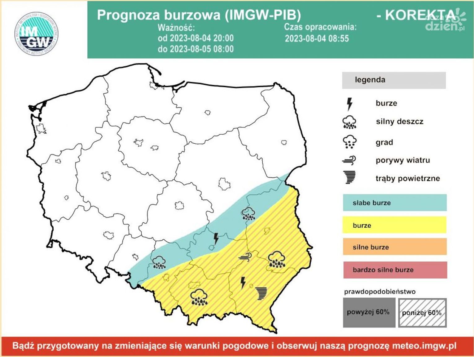 Istnieją także pewne przesłanki mówiące o tym iż w sobotnie popołudnie dodatkowo może zaistnieć szansa na rozwój gwałtownych burz. Wszystko będzie zależeć od ostatecznej trasy niżu.