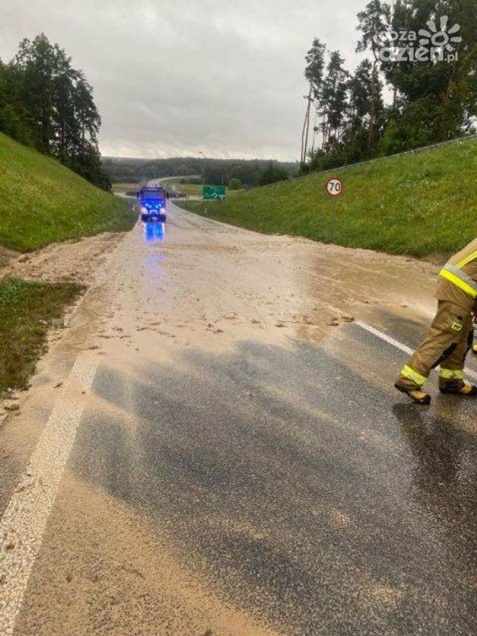 - w Staszowie na obwodnicy obsunęła się ziemia z nasypu. Droga na odcinku od ronda na Chmielnik do ronda na Kraków jest zablokowana . Strażacy usuwają ziemię z jezdni - mówi st. kpt. Marcin Bajur z KW PSP w Kielcach.