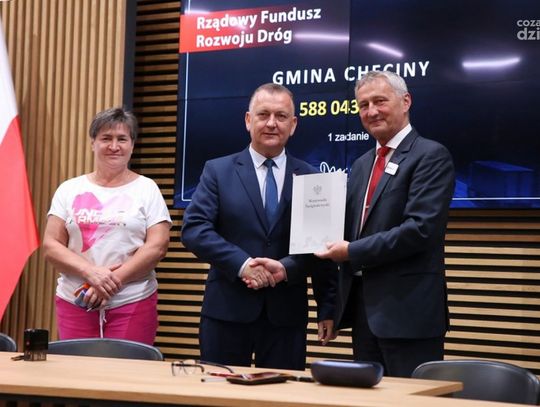 Umowę na dofinansowanie kompleksowej przebudowy ulicy Małogoskiej na odcinku od Rynku do skrzyżowania z ulicą Franciszkańską burmistrz Robert Jaworski wraz ze skarbnik gminy Jadwigą Sinkiewicz właśnie podpisał z wojewodą świętokrzyskim Zbigniewem Koniuszem. - Gratuluję burmistrzowi tak skutecznego sięgania po środki rządowe na poprawę infrastruktury drogowej. Nowe drogi i chodniki to przede wszystkim komfort, wygoda i bezpieczeństwo mieszkańców. Do Chęcin przyjeżdża wielu turystów, którzy właśnie ulicą Małogoską przemieszczają się w kierunku ważnych tutejszych zabytków. To jedna z najbardziej ruchliwych i uczęszczanych ulic w mieście, stąd też jej remont jest całkowicie uzasadniony – zaznacza wojewoda świętokrzyski Zbigniew Koniusz.