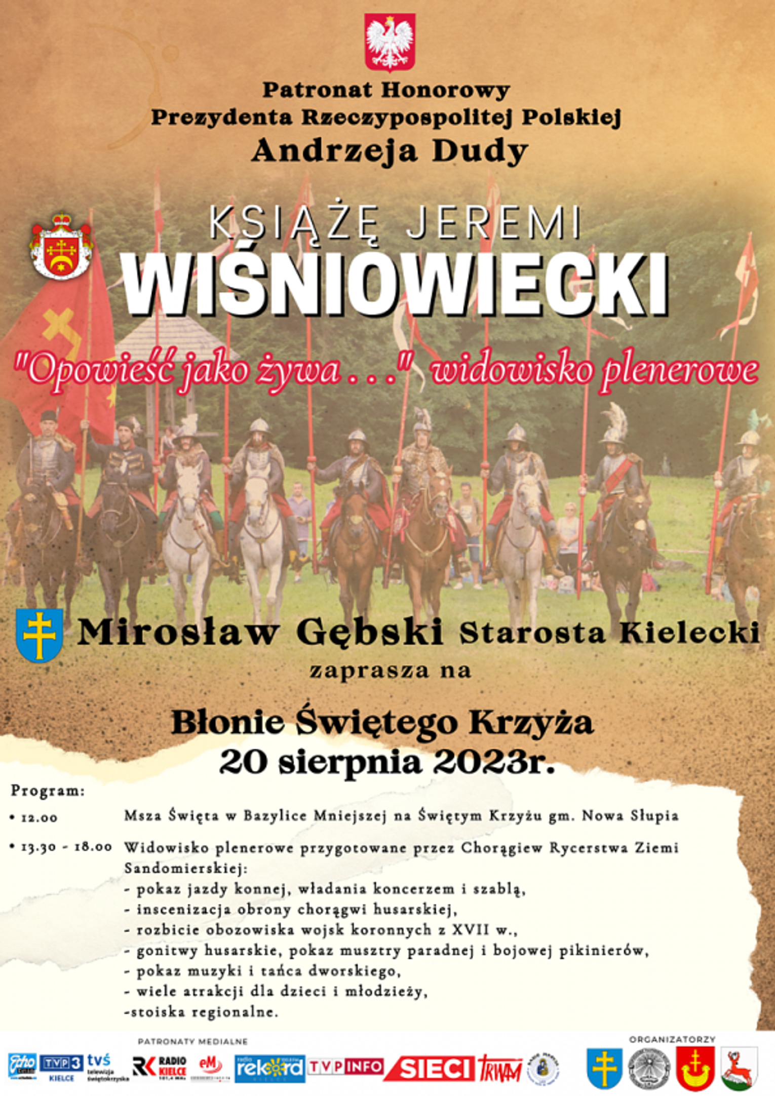 Wydarzenie rozpocznie Msza Święta w Bazylice Mniejszej na Świętym Krzyżu o godzinie 12.00 w intencji księcia Jeremiego Wiśniowieckiego. Miejsce to jest symboliczne dla województwa świętokrzyskiego i stanowi serce całego regionu. Zarówno Klasztor Misjonarzy Oblatów Maryi Niepokalanej, jak i otaczające go błonia, są chętnie i licznie odwiedzane przez turystów z całej Polski. Przybywa tu około 300 tysięcy pielgrzymów rocznie.