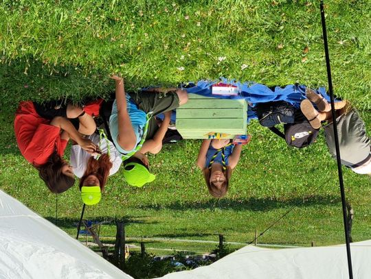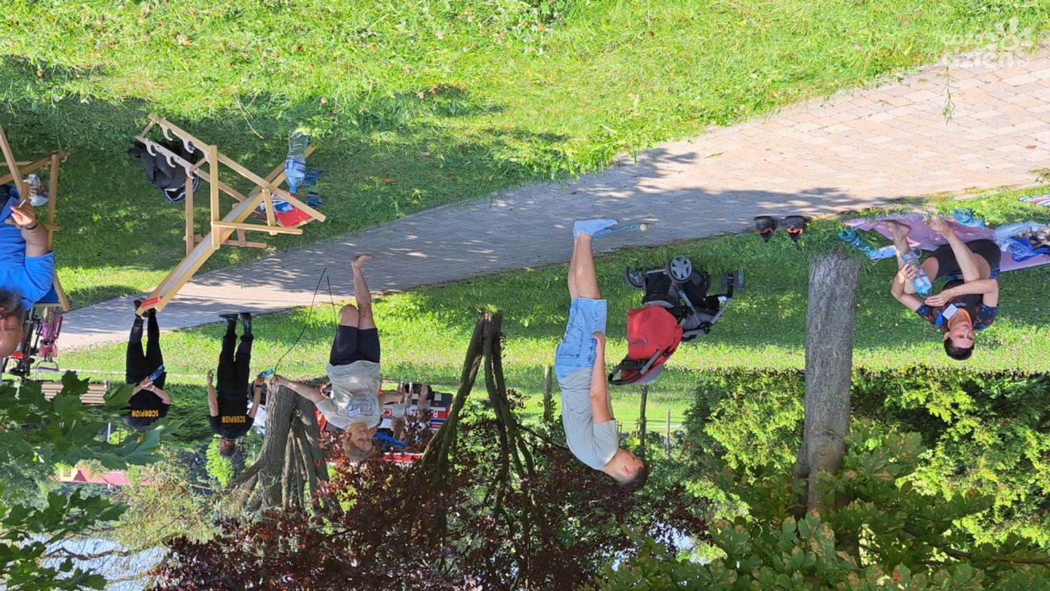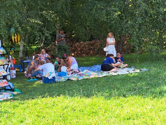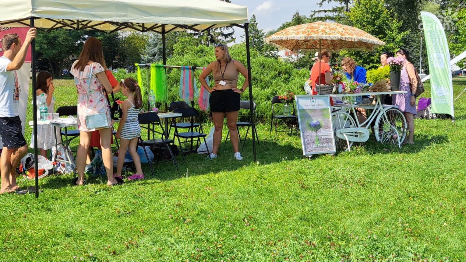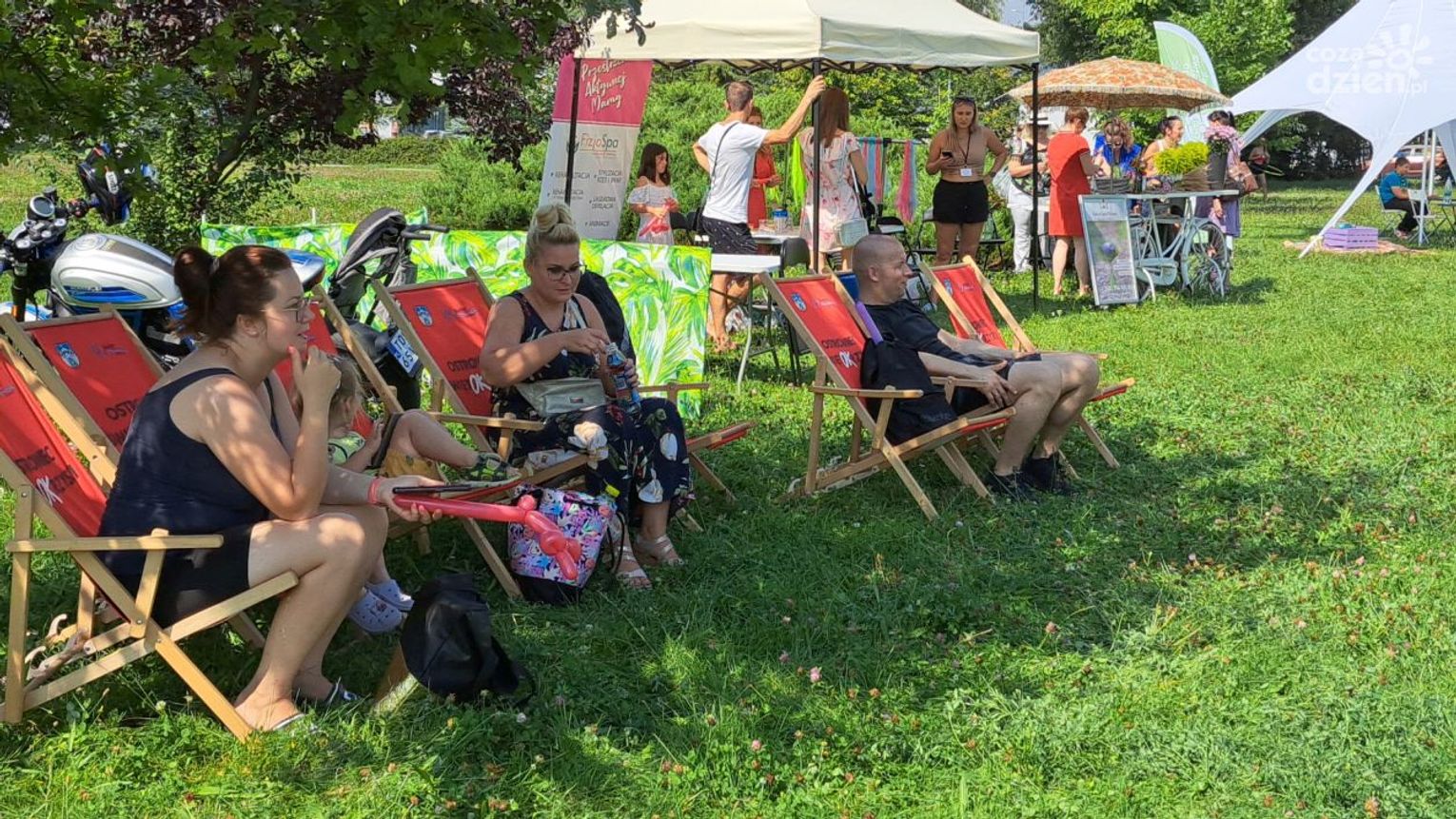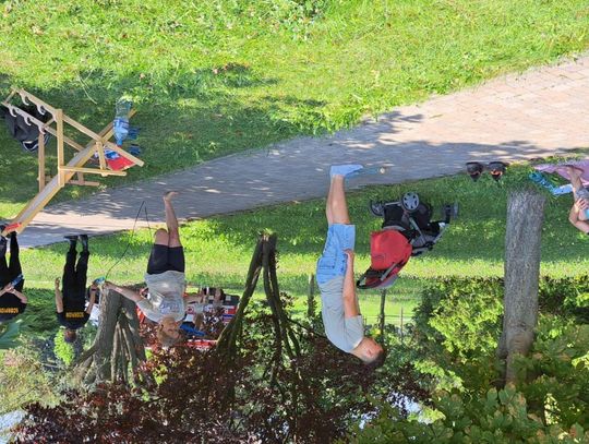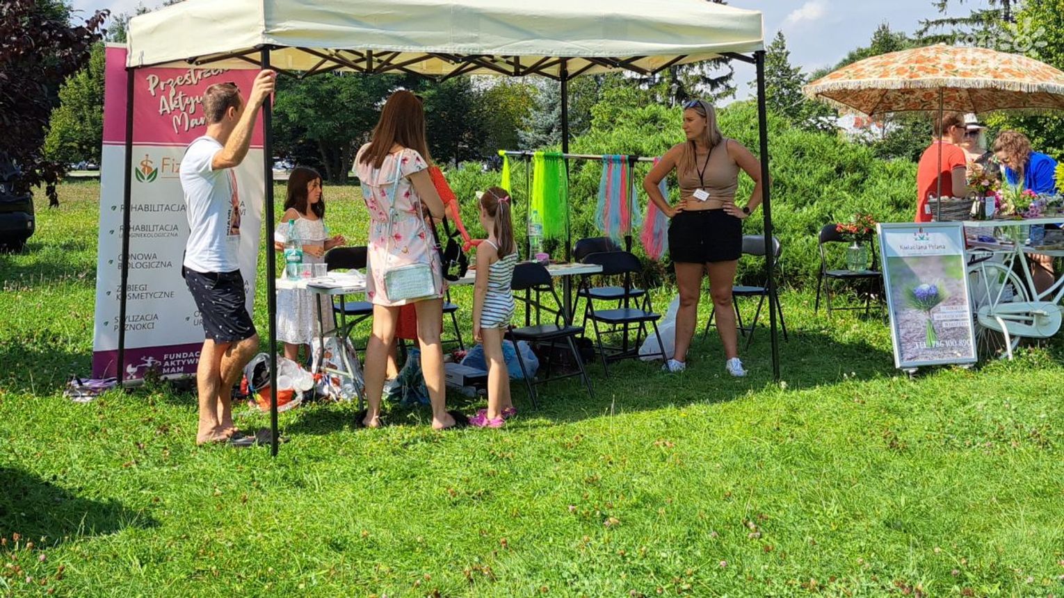 Skakanka, hula hop czy gra w bule, w takie gry i zabawy bawią się uczestnicy pikniku rodzinnego zorganizowanego przez Fundację Aktywne Mamy w ostrowieckim parku miejskim.