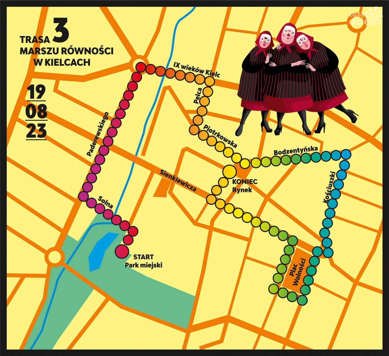 Wydarzenie rozpocznie się o godzinie 14 w Parku Staszica. Potem uczestnicy przejdą ulicami Kielc, by wyrazić wsparcie dla osób LGBT+, oraz wszystkich osób zagrożonych wykluczeniem i dyskryminacją! Będą z nami wspaniałe Drag Queen, będzie kolorowo, głośno, tanecznie i radośnie