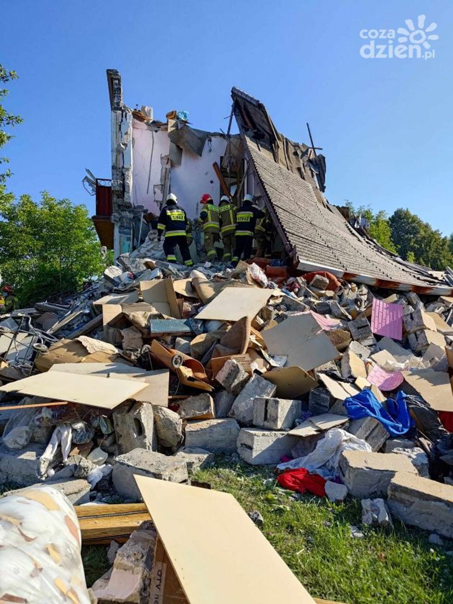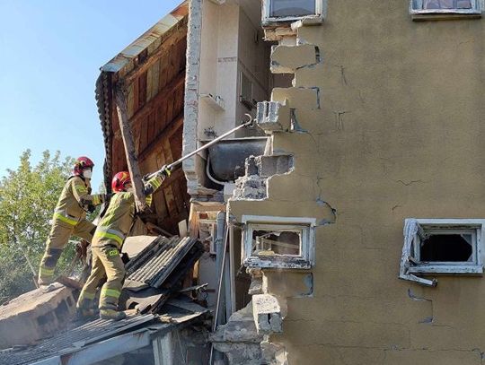 Zgłoszenie służby otrzymały we wtorek po godz. 8.00. Wynikało z niego, że doszło do wybuchu 11 kilogramowej butli gazowej. Na miejscu okazało się, że większa część budynku uległa zniszczeniu. Pod warstwą gruzu prawdopodobnie znajduje się kobieta. Na miejscu pracuje siedem jednostek i udają się kolejne, w tym specjalistyczna grupa poszukiwawczo - ratownicza z Kielc.