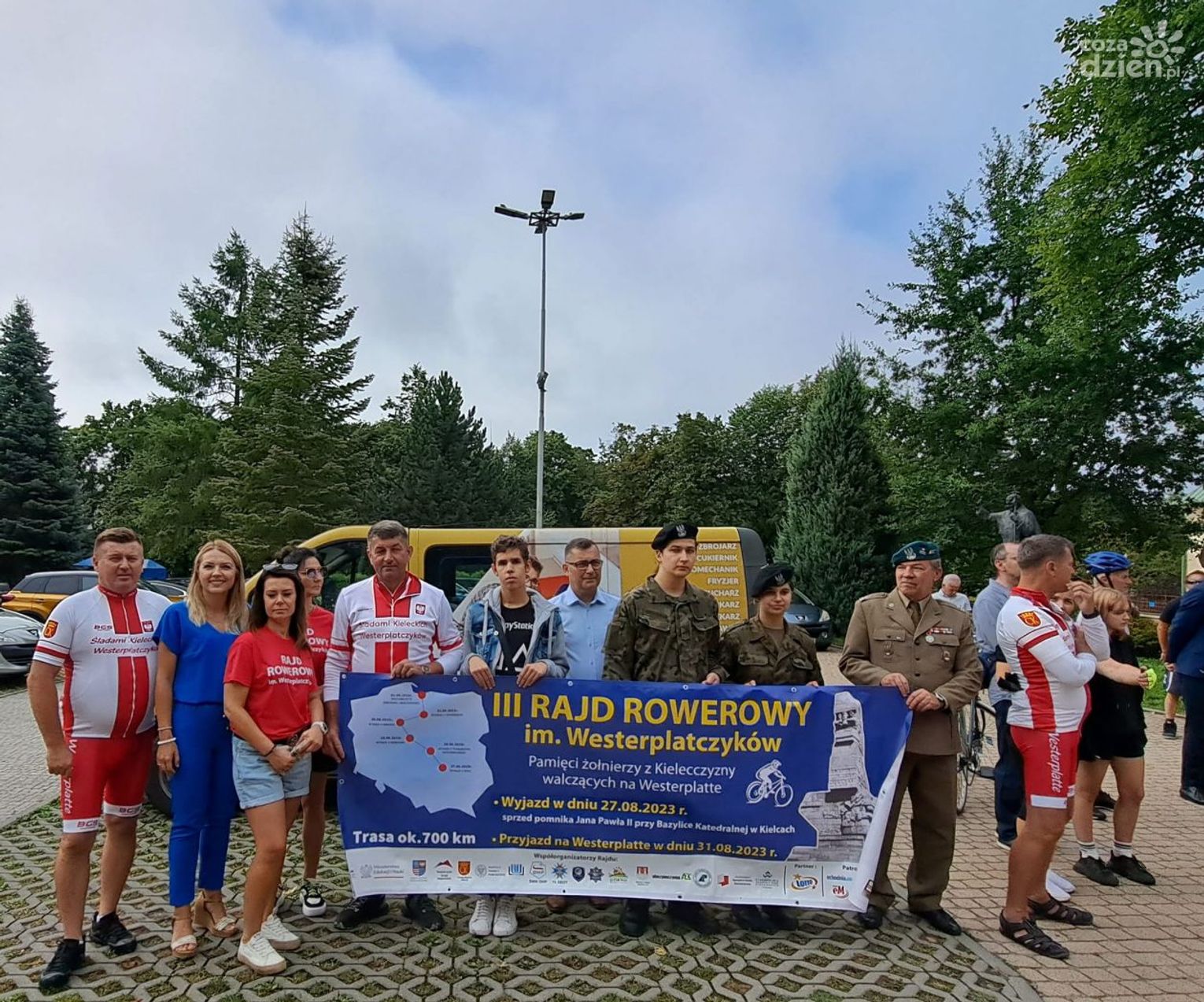 27 sierpnia o godz. 8.30 grupa gotowych do drogi uczestników spotkała się pod pomnikiem Świętego Jana Pawła II, na placu Najświętszej Maryi Panny w Kielcach. W bazylice katedralnej miała miejsce jeszcze wspólna modlitwa i poświęcenie przed długą trasą. Następnie wspólnie przejechali oni na parking przy Kościele Najświętszej Maryi Panny w Dąbrowie. To z tego miejsca w dalszą drogę wyjechali wspólnie uczestnicy trzeciej wyprawy Rajdu Kielce- Westerplatte. Na trasę wyruszyły dwie grupy: jedna pod opieką Radnego Grzegorza Skiby, przedstawiciela ŚWK OHP w Kielcach, druga pod opieką Kazimierza Mądzika, kuratora świętokrzyskiego.