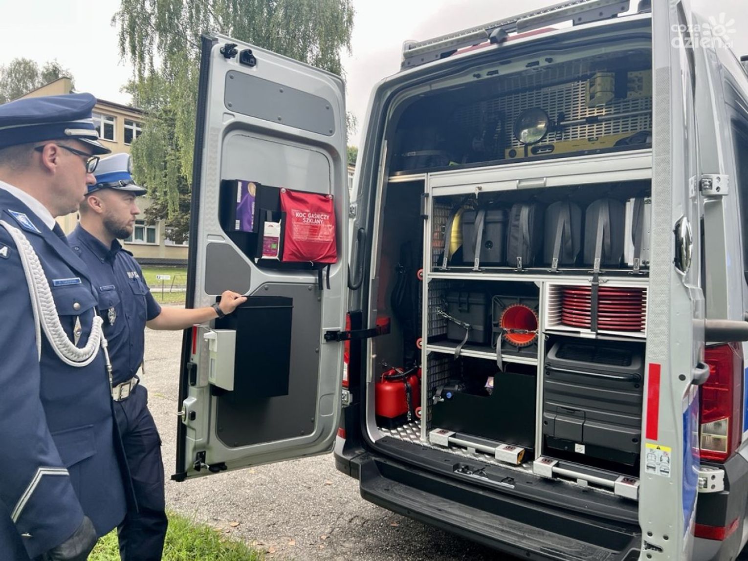 - Są to busy Volkzwagen Krafter specjalnie wyposażone do tego aby usuwać skutki wypadków drogowych. Policjanci wezwani na miejsce zdarzenia mają do dyspozycji w pojeździe specjalistyczny sprzęt aby dokładnie zabezpieczyć ślady na miejscu. Ten pojazd jest również wyposażony w agregat prądotwórczy. Dzięki temu, jeżeli czynności się przeciągają, można wykorzystać dodatkowy silnik, który jest w wyposażeniu, np. do oświetlenia miejsca zdarzenia.
