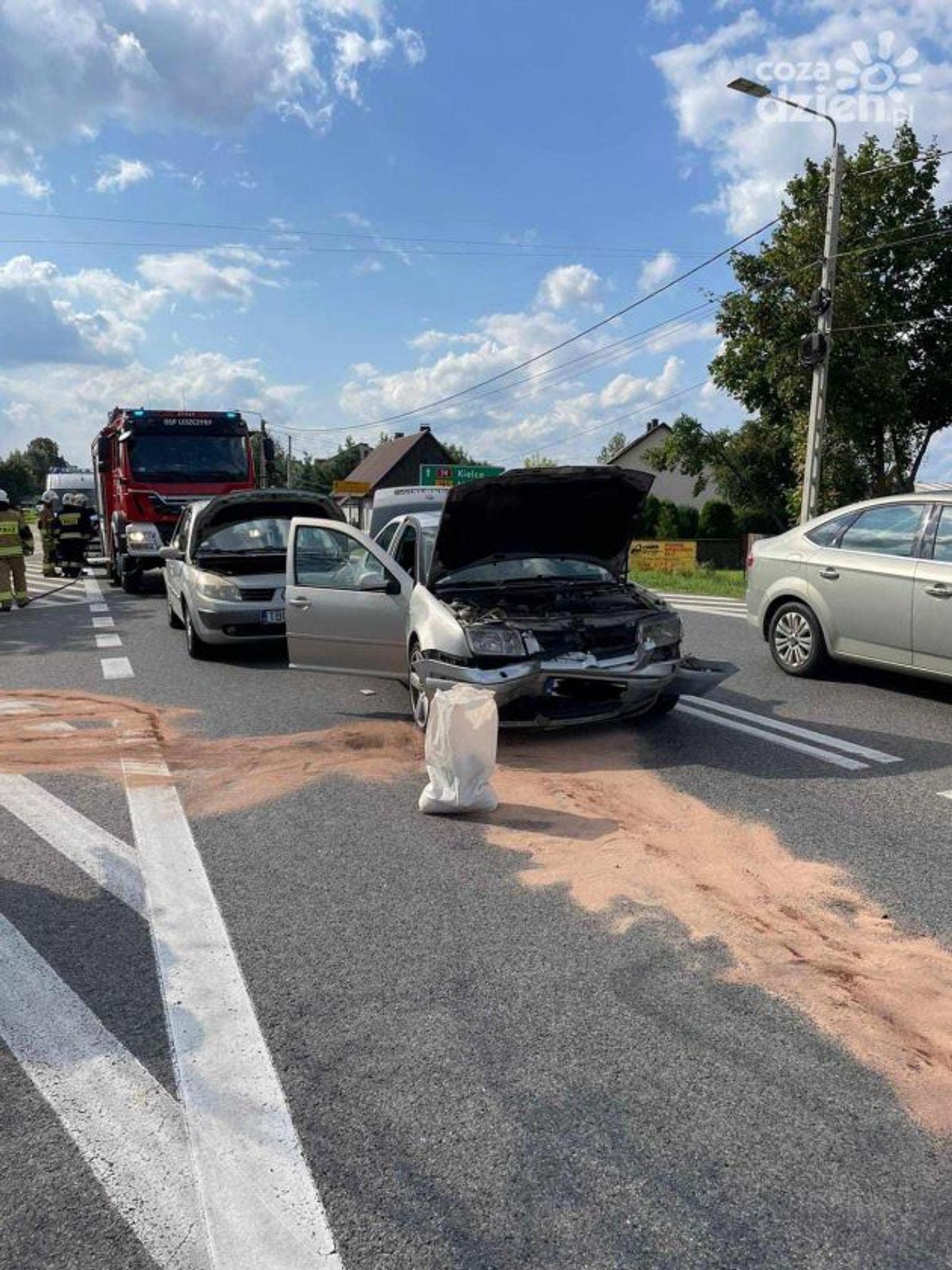 W zdarzeniu do jakiego doszło w piątkowe popołudnie brały udział cztery samochody. Zderzyły się Ford CMax, Volkswagen Bora, Skoda Scala i Renault Scienic.