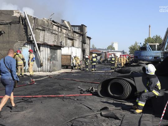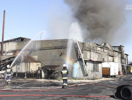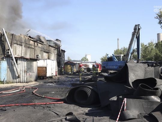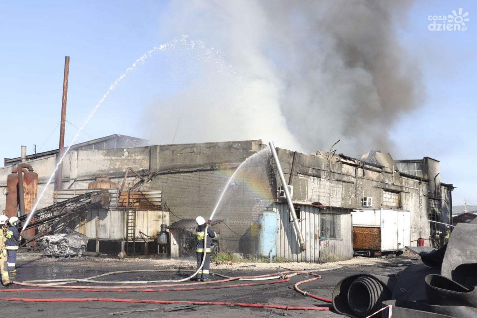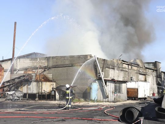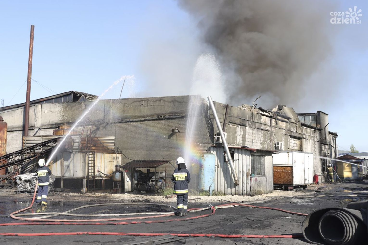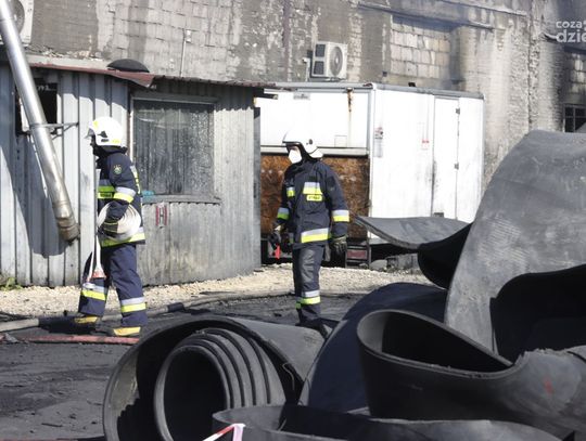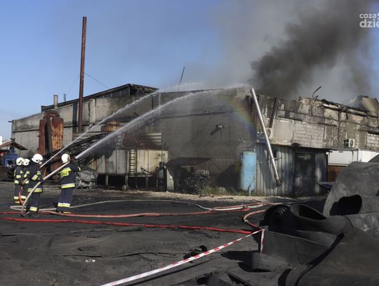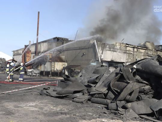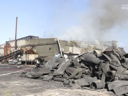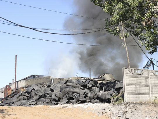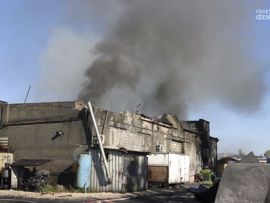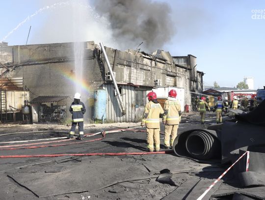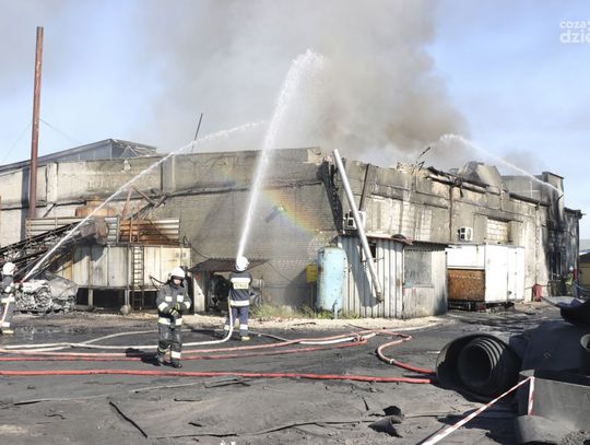 Pożar hali na terenie zakładu Termo- Gum, zajmującego się przetwarzaniem gumy wybuchł w środę o poranku w Nowinach. Słup dymu widać z kilkudziesięciu kilometrów.