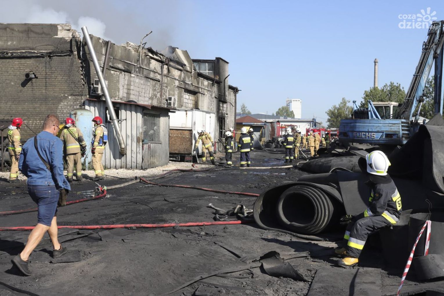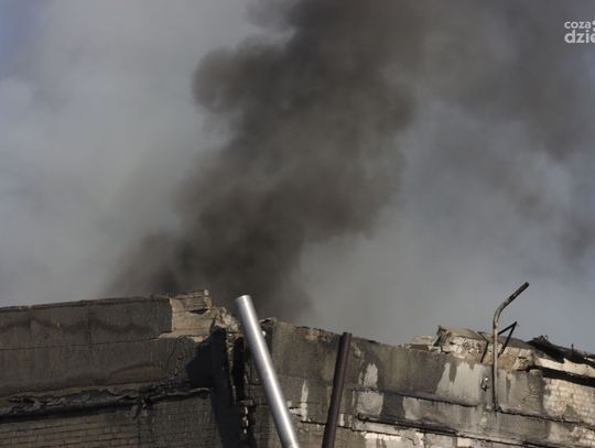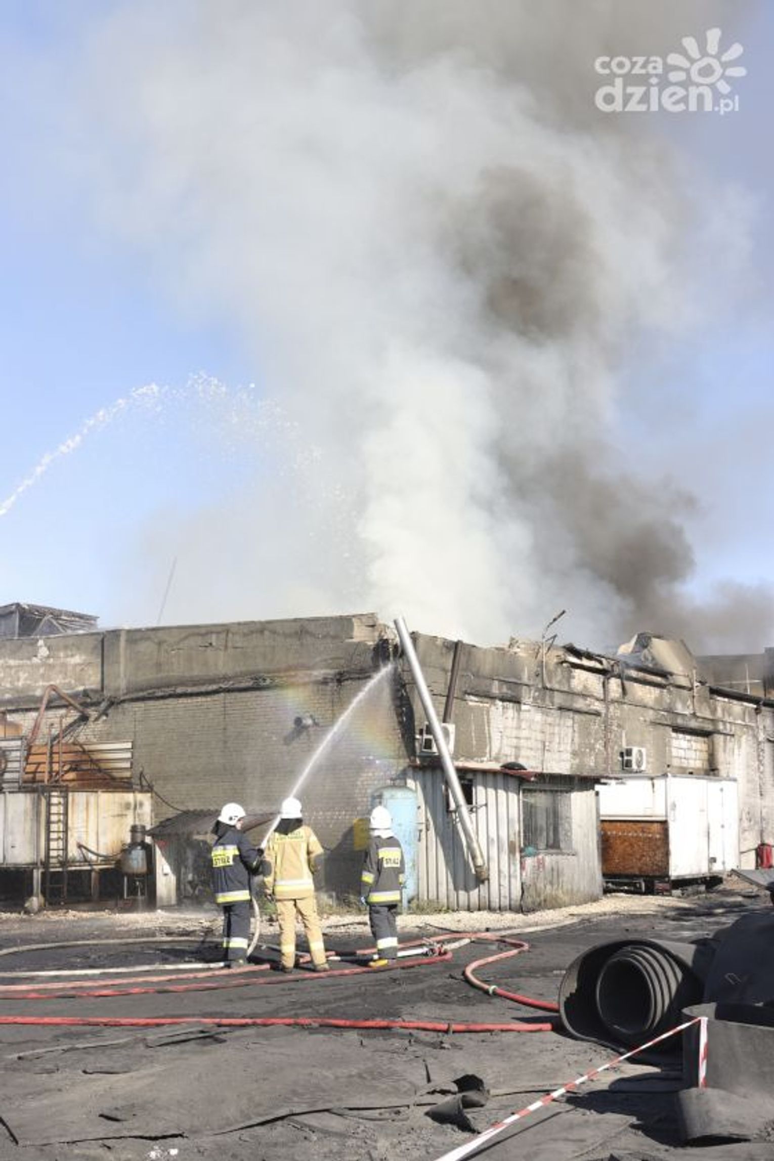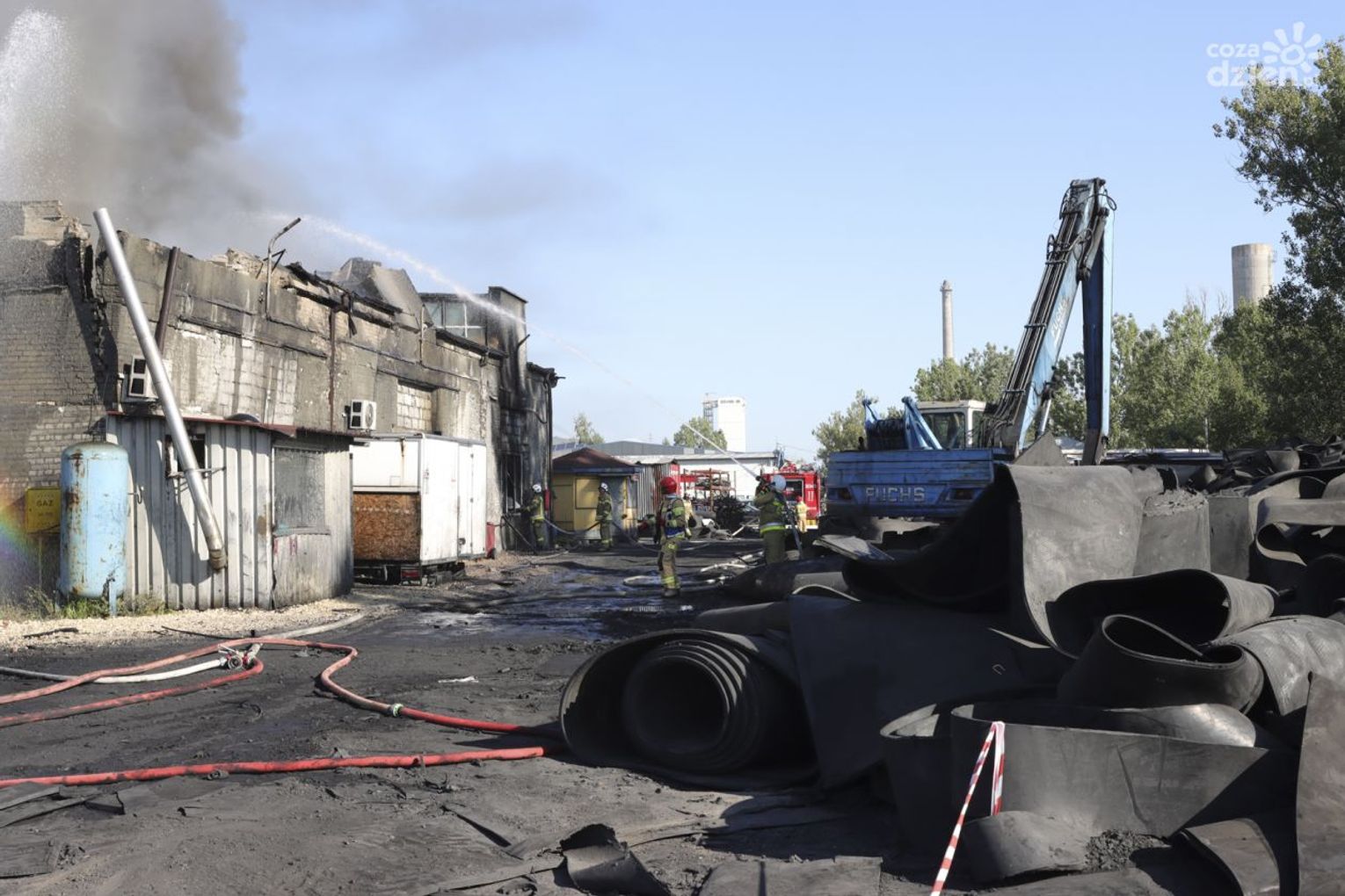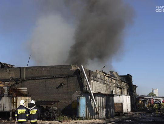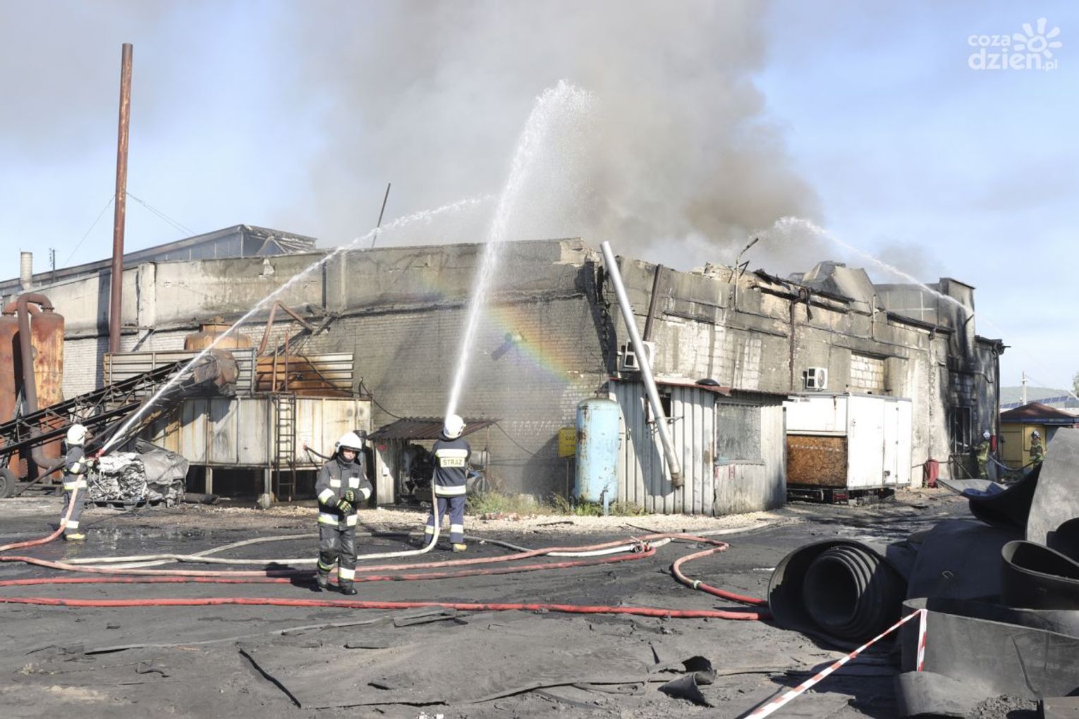 Pożar hali na terenie zakładu Termo- Gum, zajmującego się przetwarzaniem gumy wybuchł w środę o poranku w Nowinach. Słup dymu widać z kilkudziesięciu kilometrów.