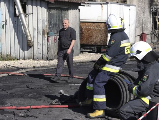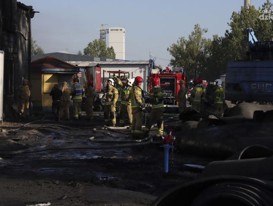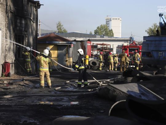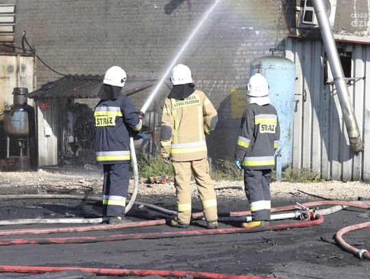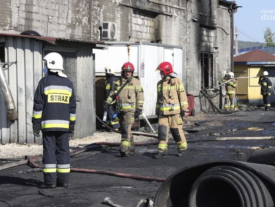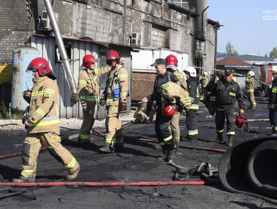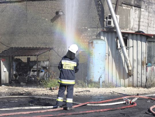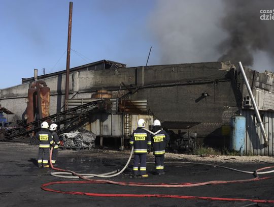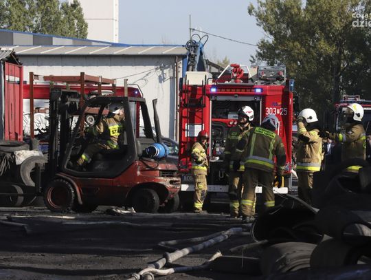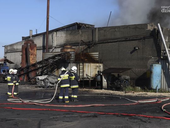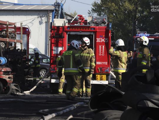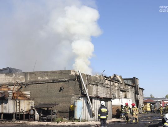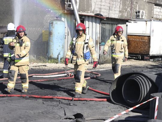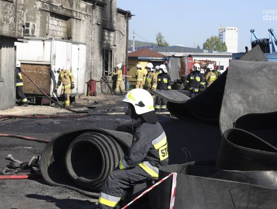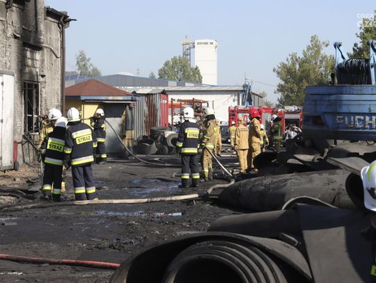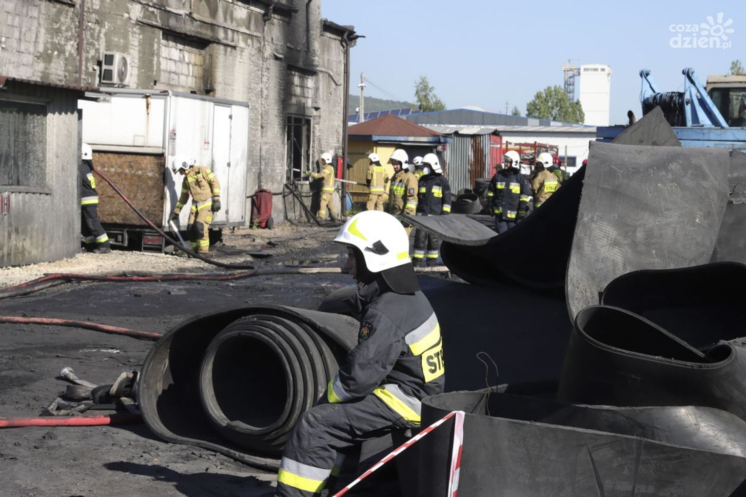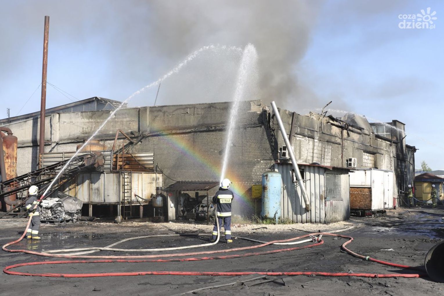 Pożar hali na terenie zakładu Termo- Gum, zajmującego się przetwarzaniem gumy wybuchł w środę o poranku w Nowinach. Słup dymu widać z kilkudziesięciu kilometrów.