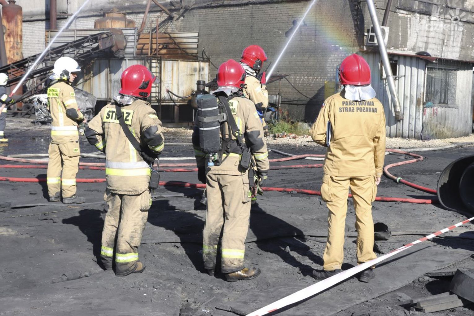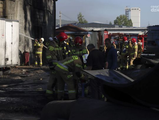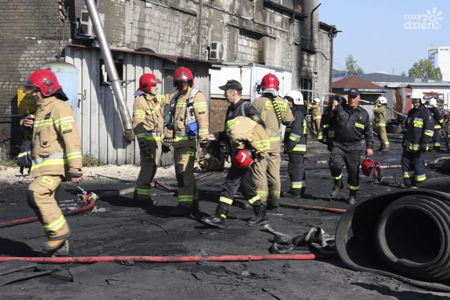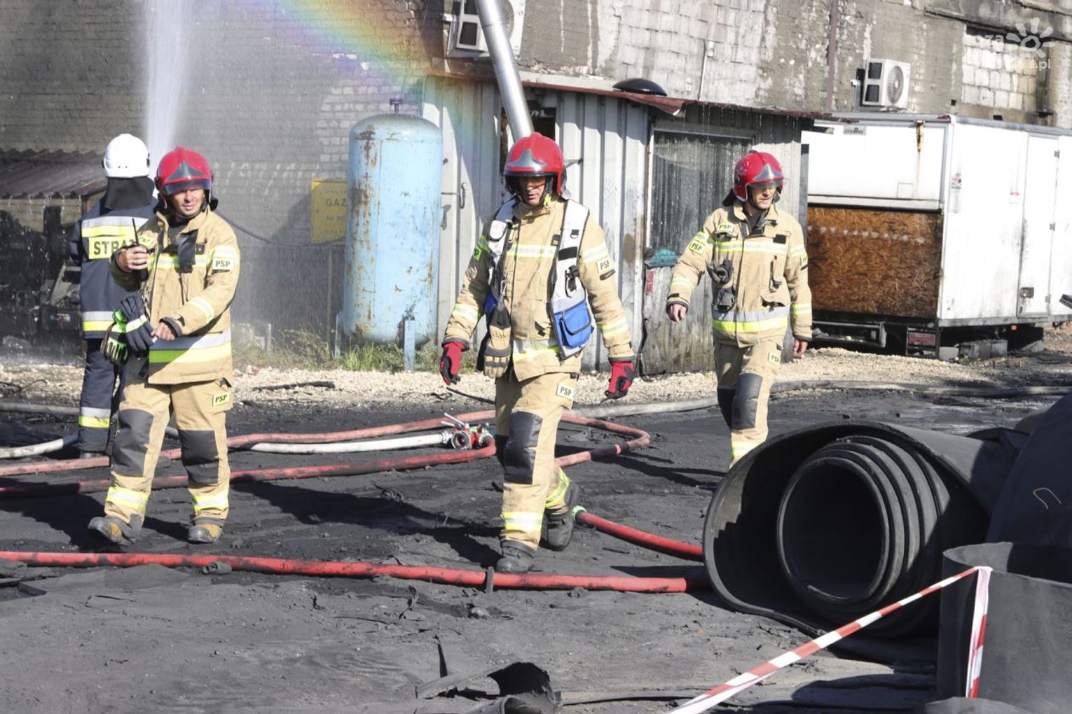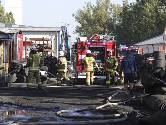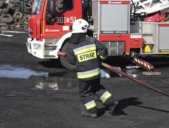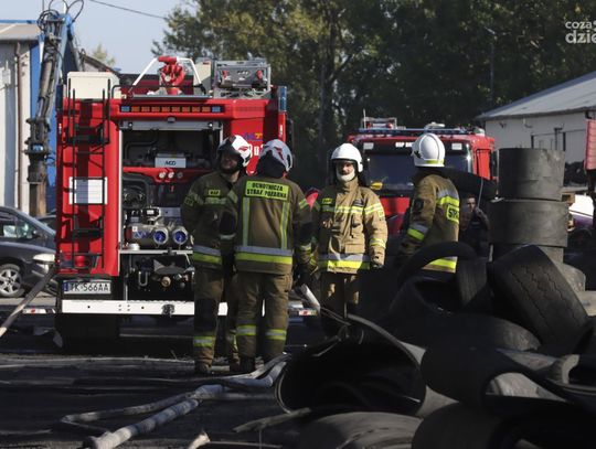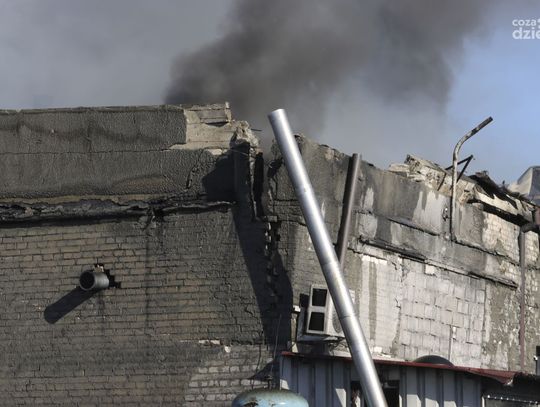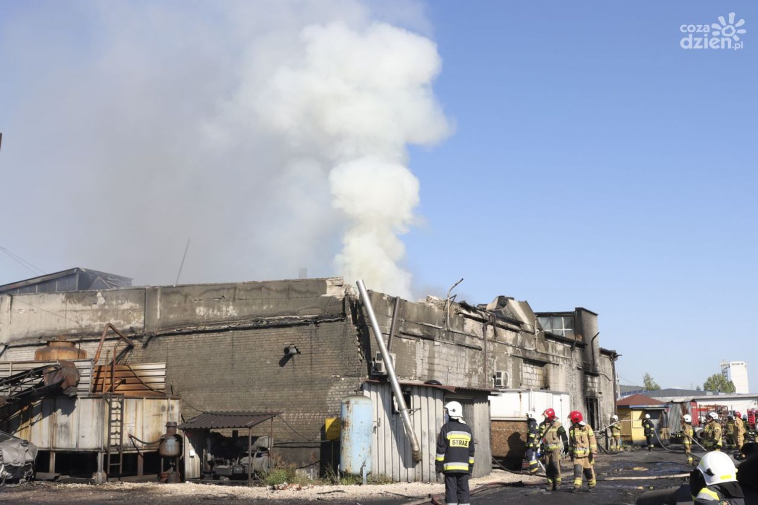 Pożar hali na terenie zakładu Termo- Gum, zajmującego się przetwarzaniem gumy wybuchł w środę o poranku w Nowinach. Słup dymu widać z kilkudziesięciu kilometrów.
