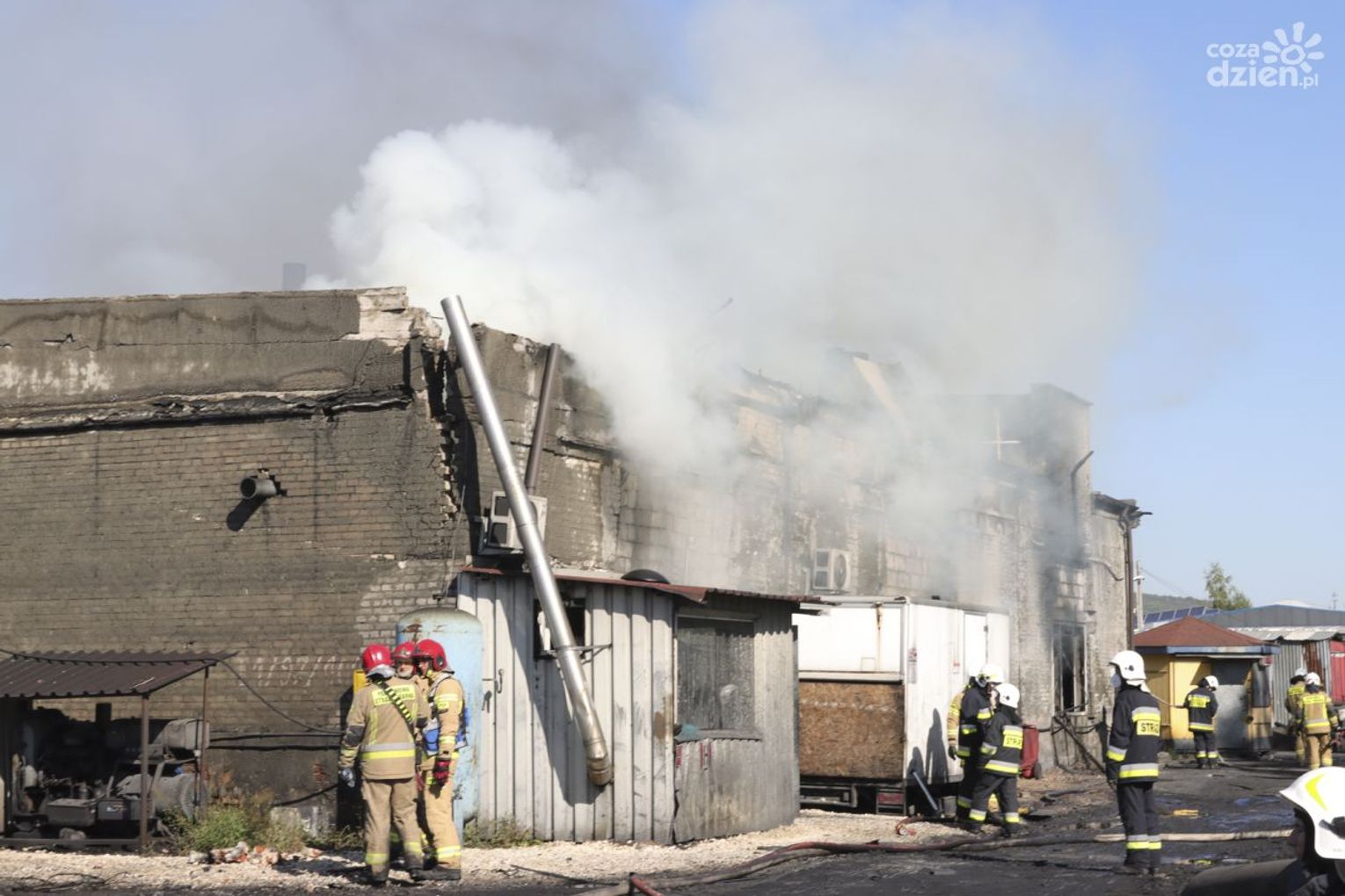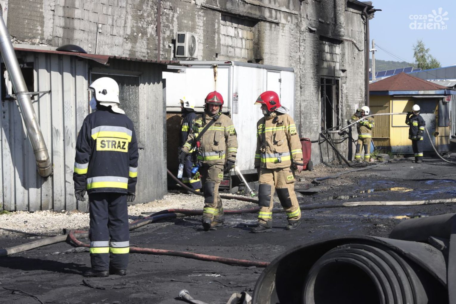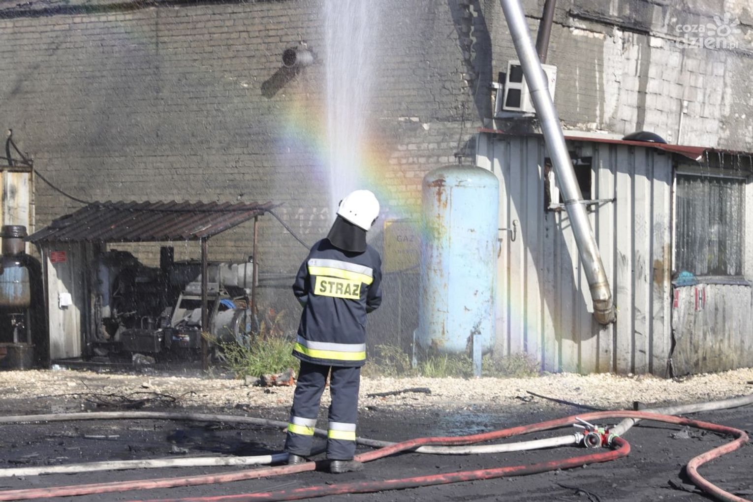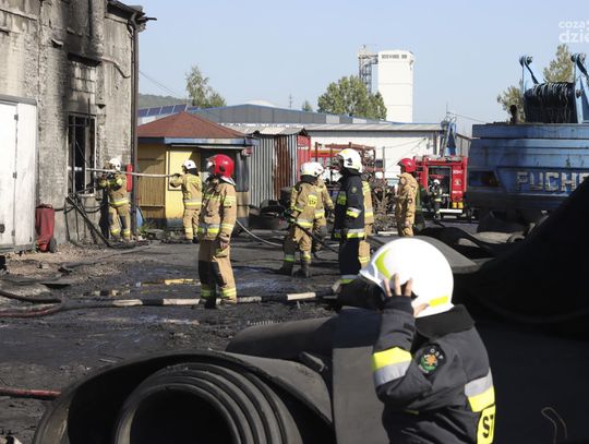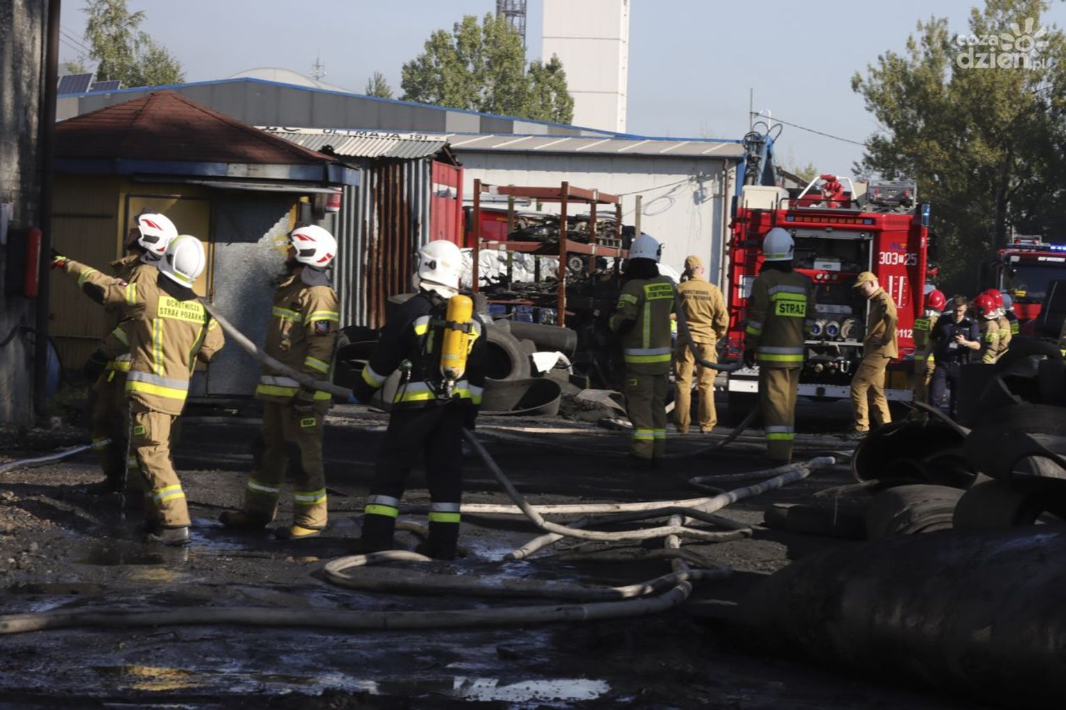 Pożar hali na terenie zakładu Termo- Gum, zajmującego się przetwarzaniem gumy wybuchł w środę o poranku w Nowinach. Słup dymu widać z kilkudziesięciu kilometrów.
