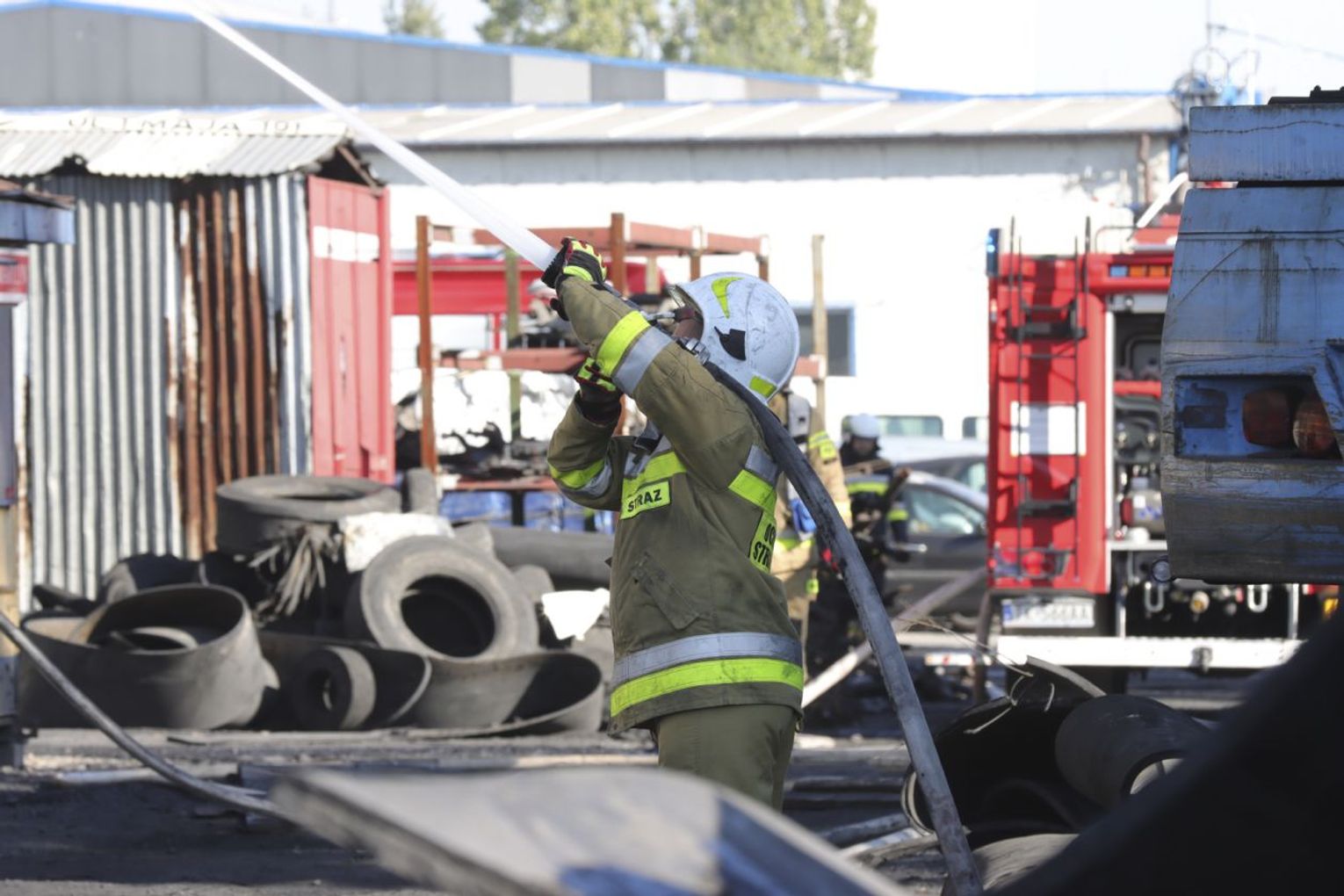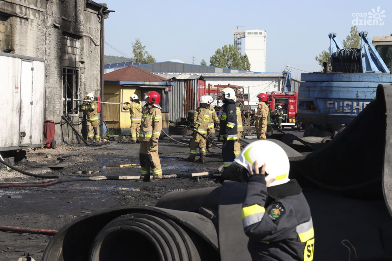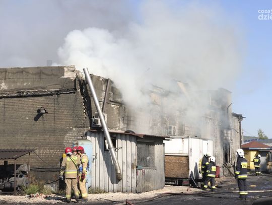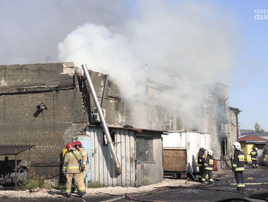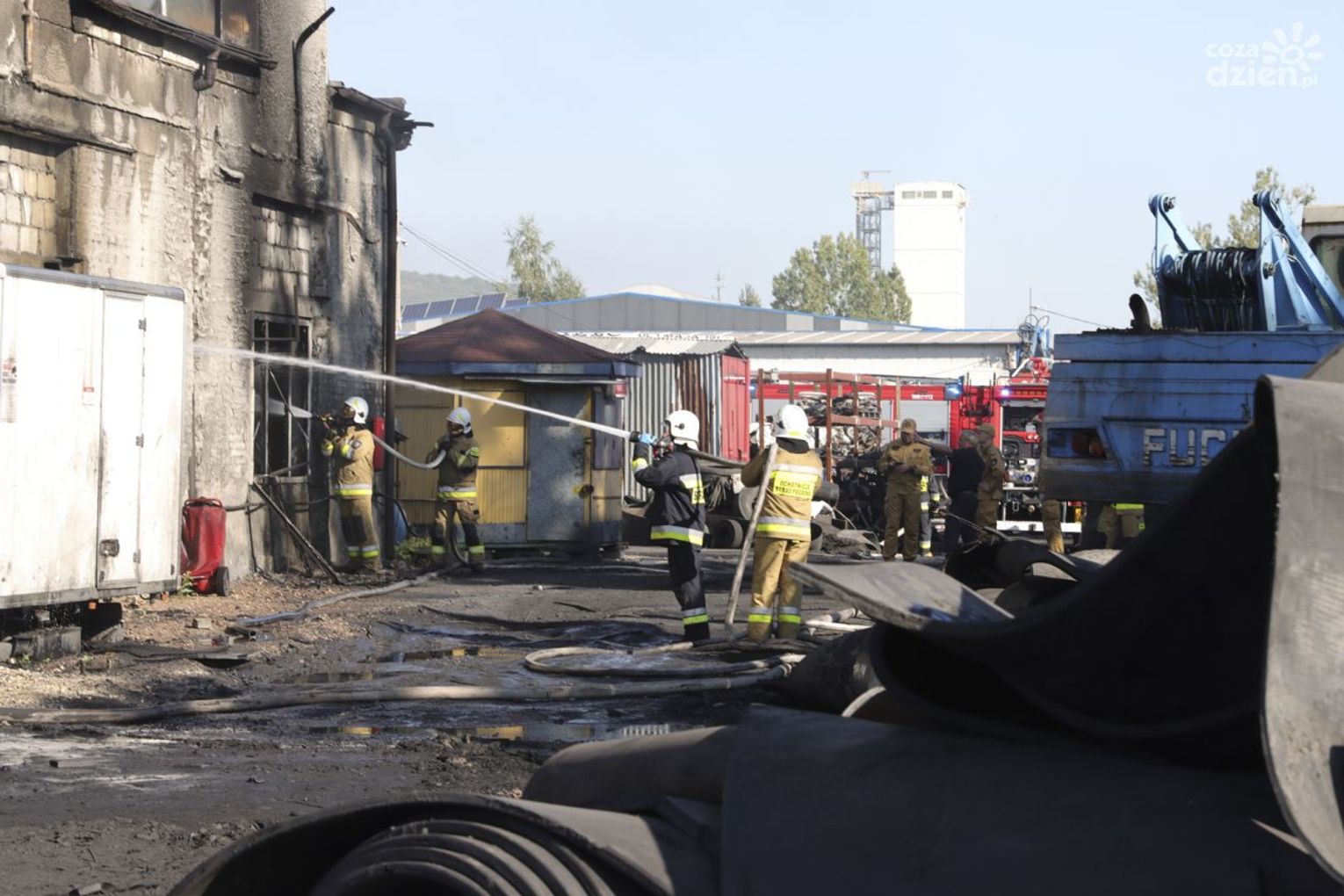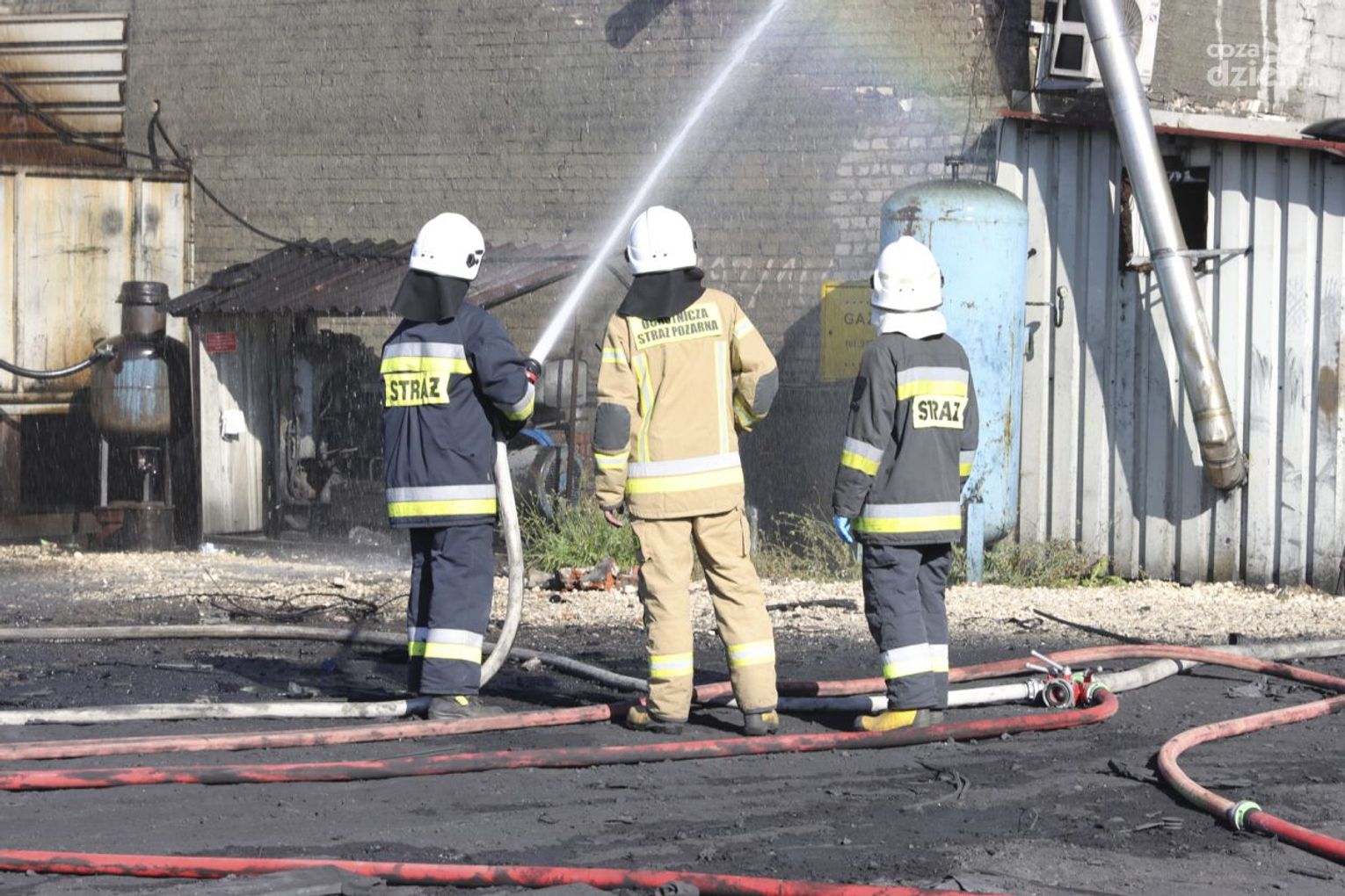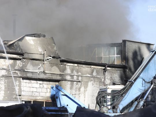 Pożar hali na terenie zakładu Termo- Gum, zajmującego się przetwarzaniem gumy wybuchł w środę o poranku w Nowinach. Słup dymu widać z kilkudziesięciu kilometrów.