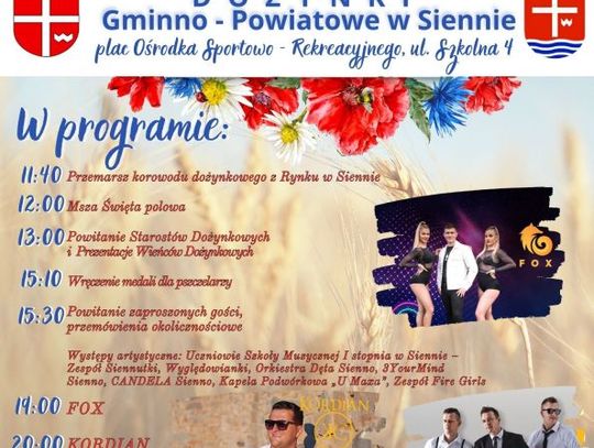 Na gminno-powiatowych dożynkach w Siennie będzie też nasze radiowe studio plenerowe. Wstęp na wydarzenie jest bezpłatny.