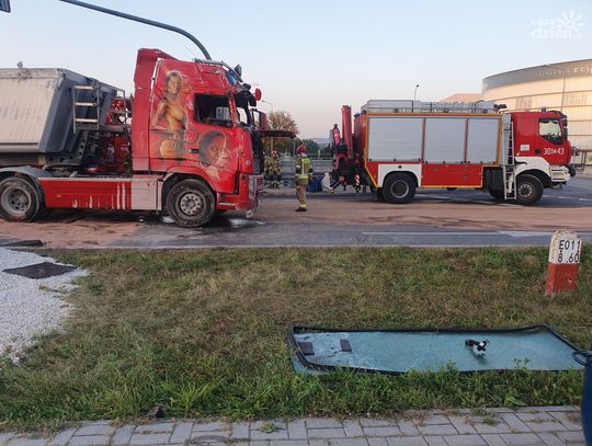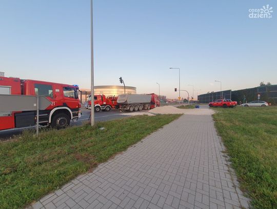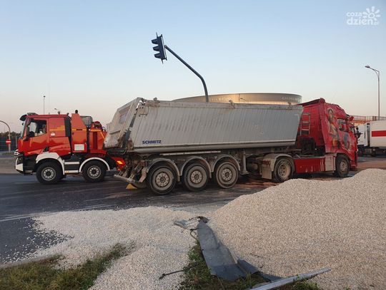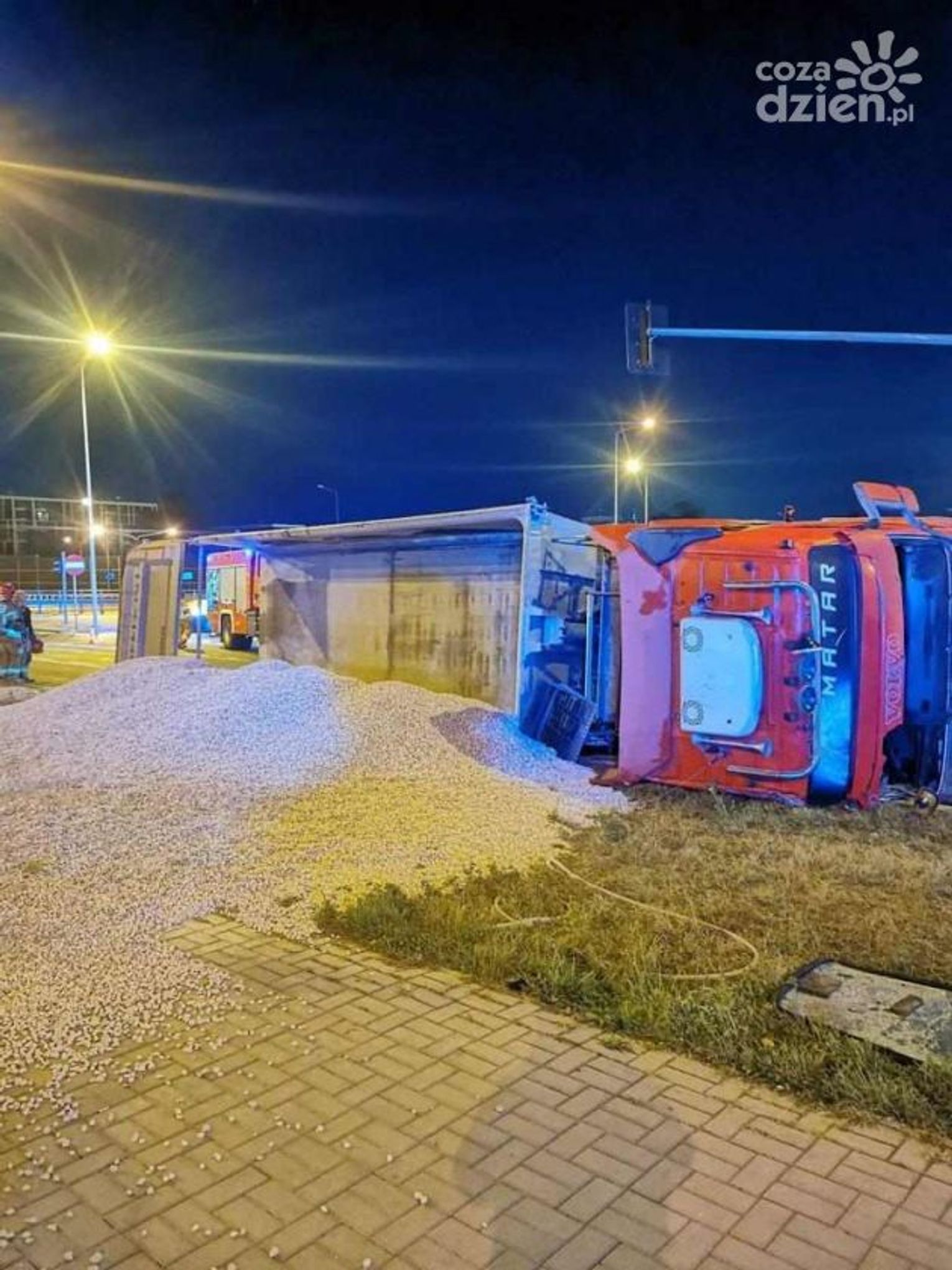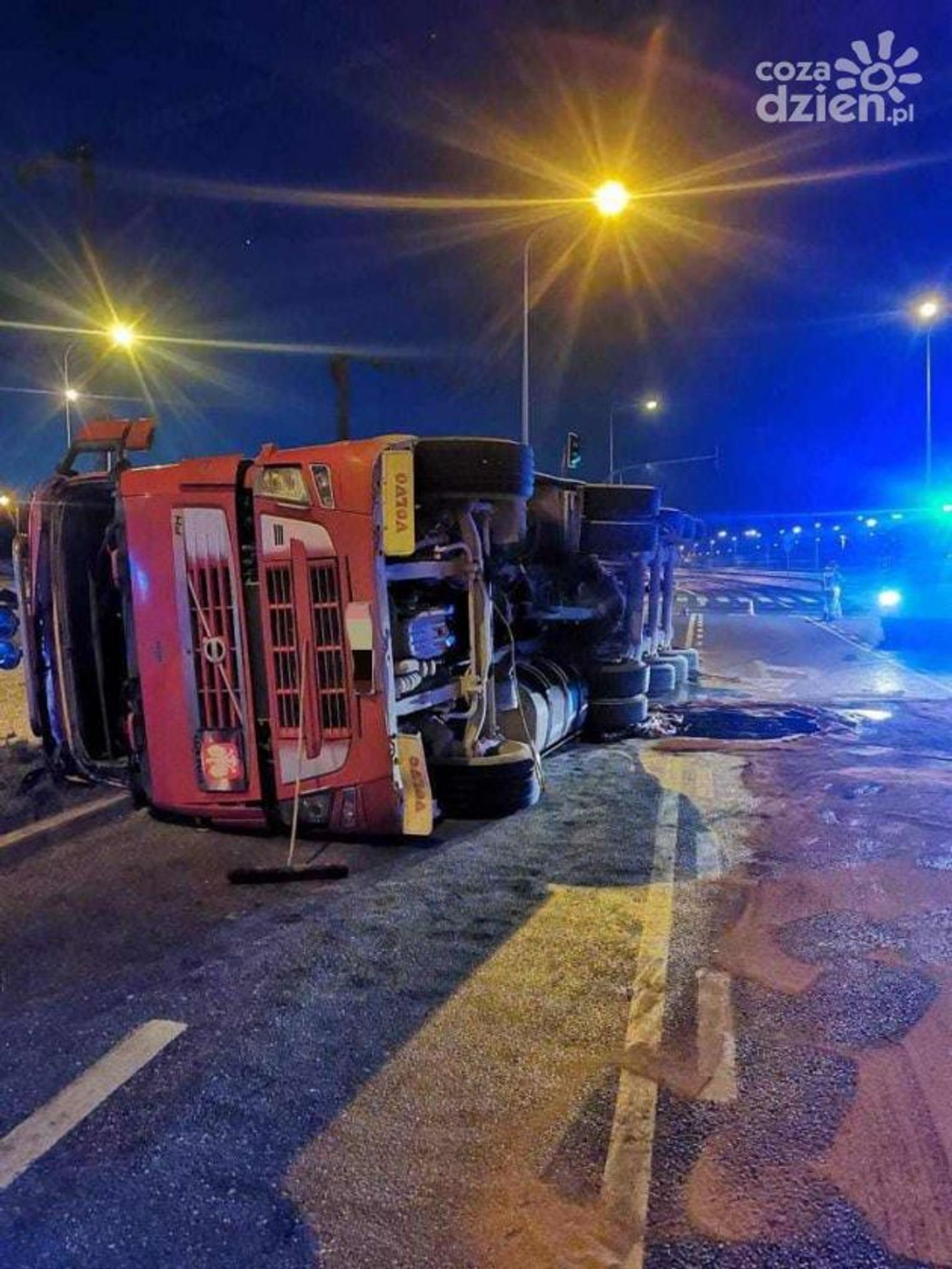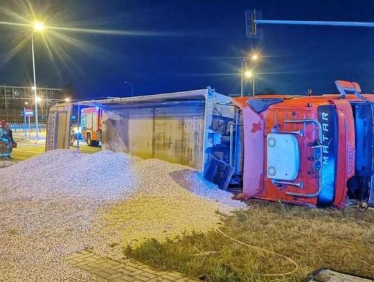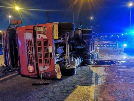 Służby otrzymały zgłoszenie o przewróconym ciągniku siodłowym w poniedziałek ok. godz. 4.00. Kierowca z pojazdu wydostał się o własnych siłach, po przebadaniu został zabrany do szpitala.