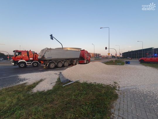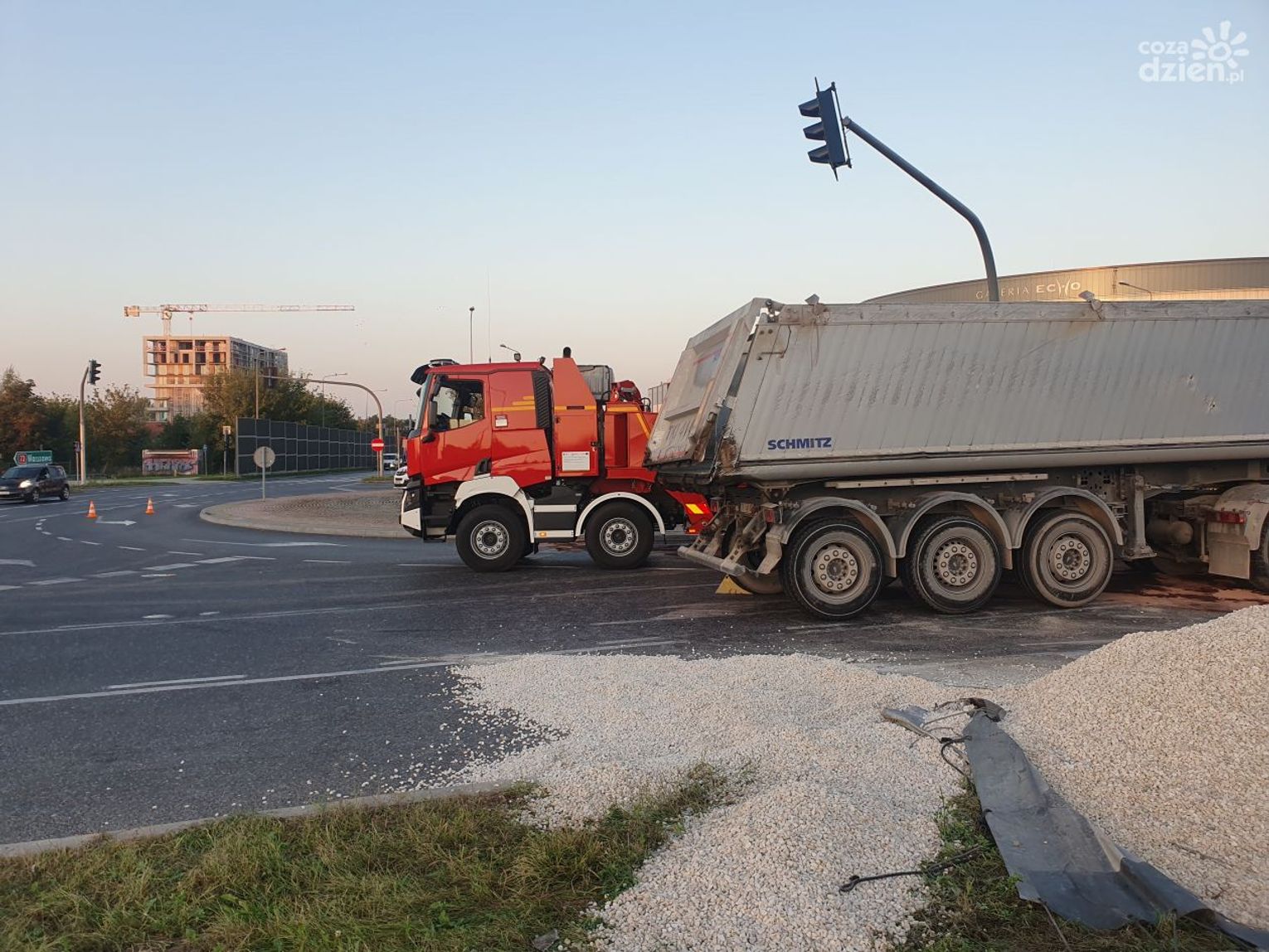 - działania straży polegały na udzieleniu pomocy kierowcy i ustawieniu pojazdu na koła. Trzeba było też uprzątnąć kruszywo z jezdni - informuje st. ogn. Beata Gizowska z KM PSP w Kielcach.