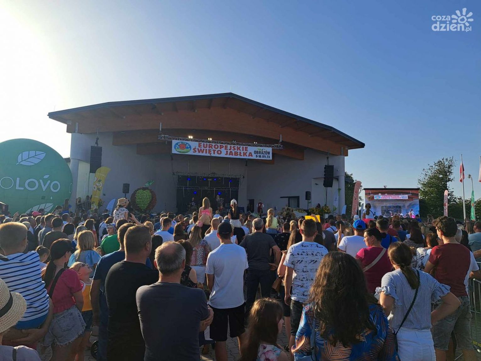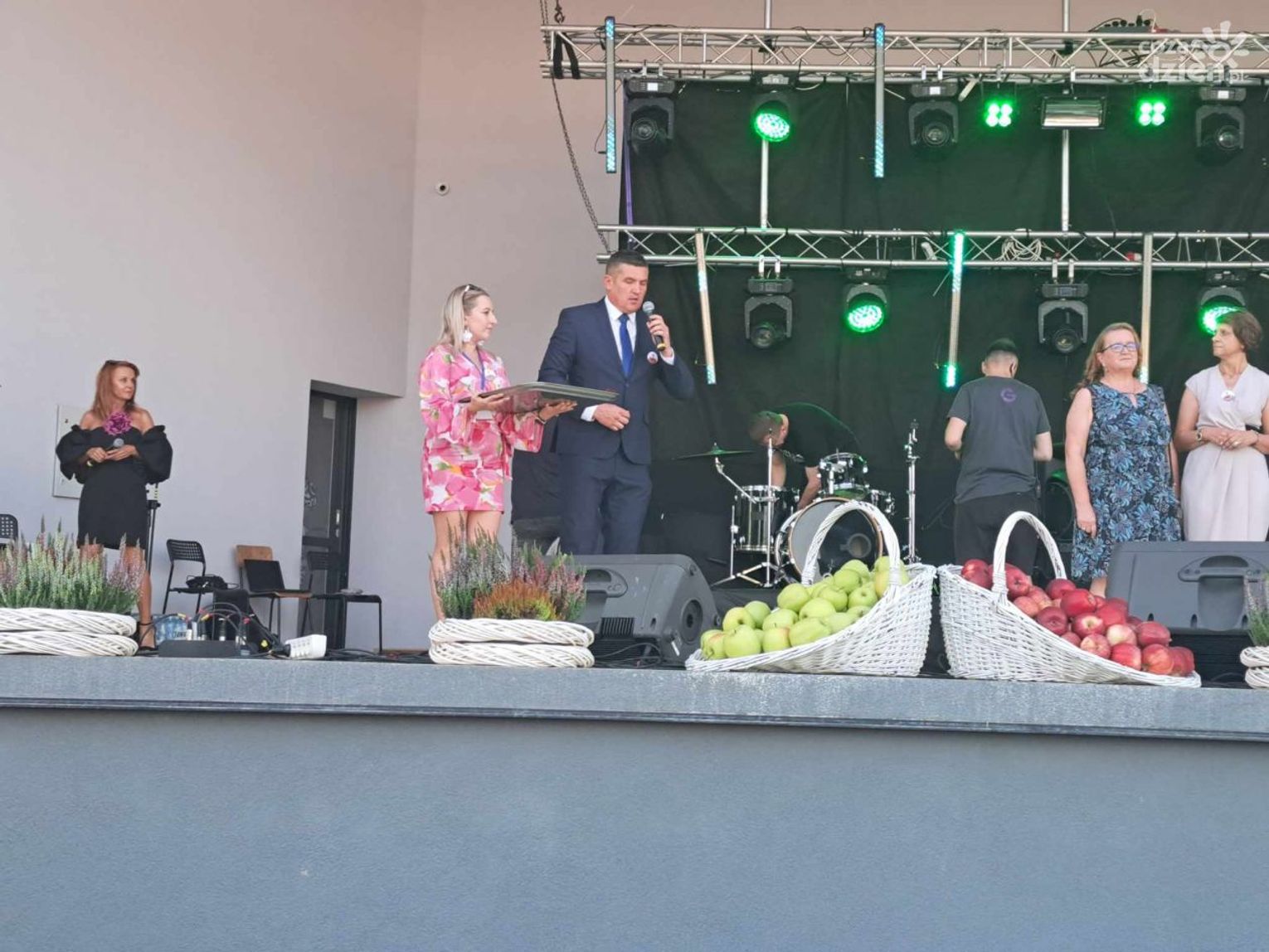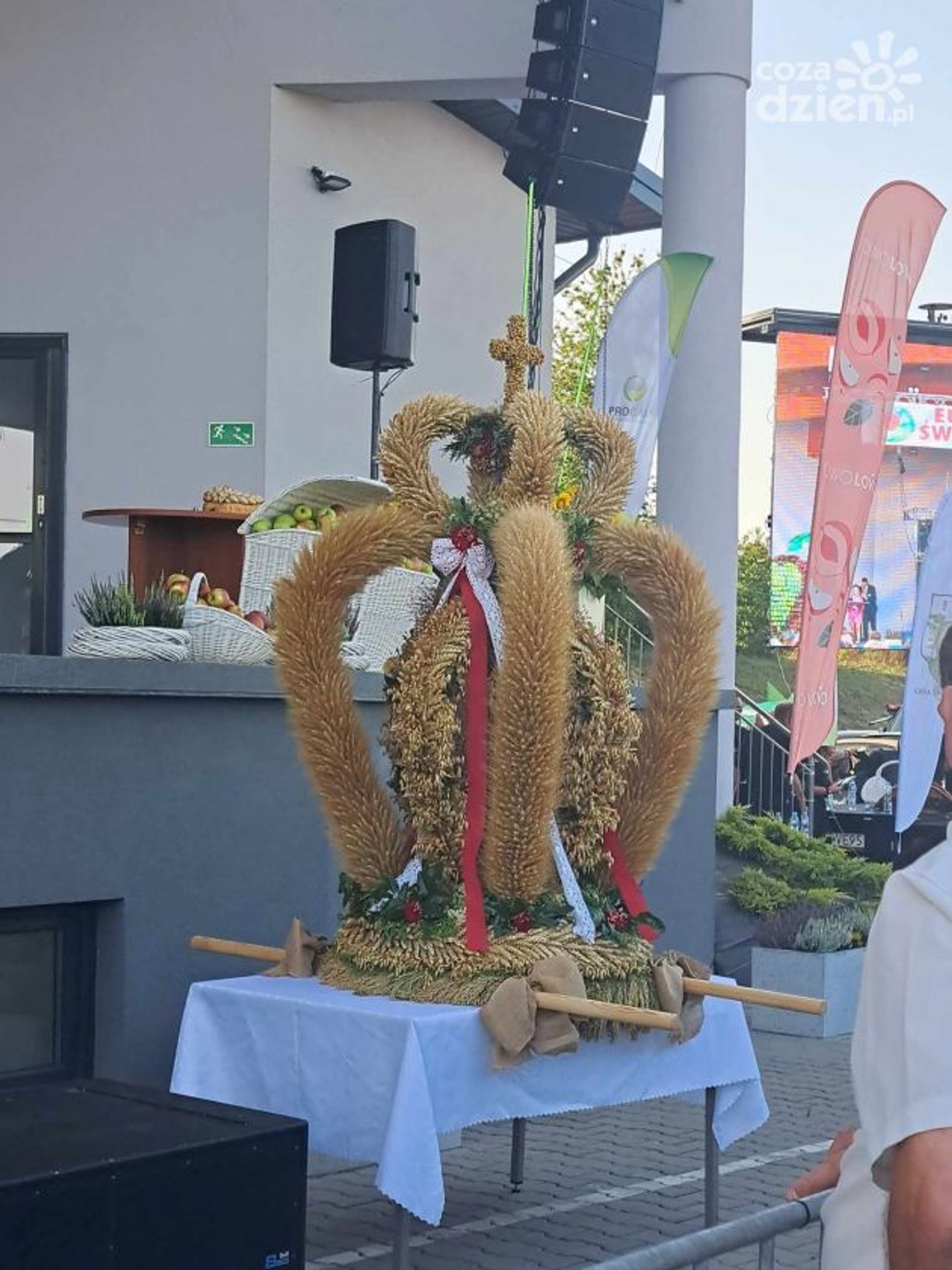 Te swoistego owocowe dożynki to już tradycja w tej gminie, słynnej z sadownictwa. Dlatego jabłka są elementem dekoracji. A na niej prezentowały się zespoły ludowe Gorzyczany czy Folk Song. Jako pierwsza gwiazda wystąpiła Cleo. W programie jeszcze występy zespołu VOX a wieczorem mają wystąpić zespół TEX oraz MiG.