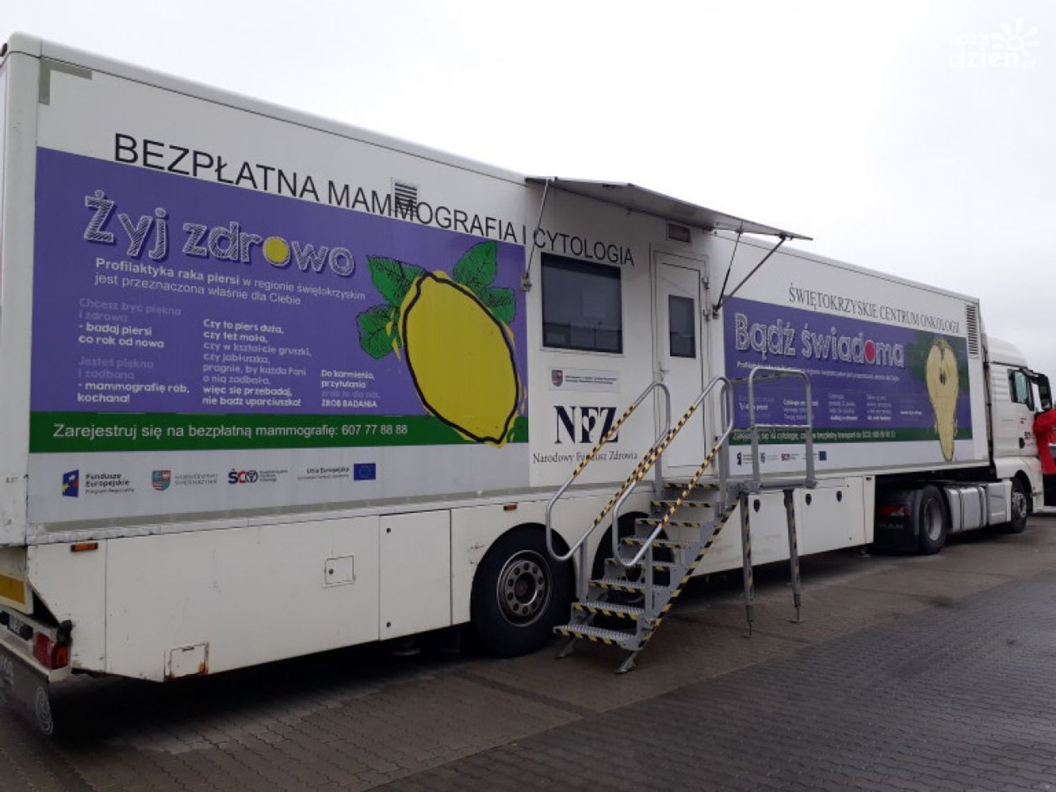 Mobilna pracownia diagnostyczna Świętokrzyskiego Centrum Onkologii, w której mieści się pracownia mammograficzna z bardzo precyzyjnym cyfrowym mammografem oraz gabinet położnej, w najbliższych dniach odwiedzi: