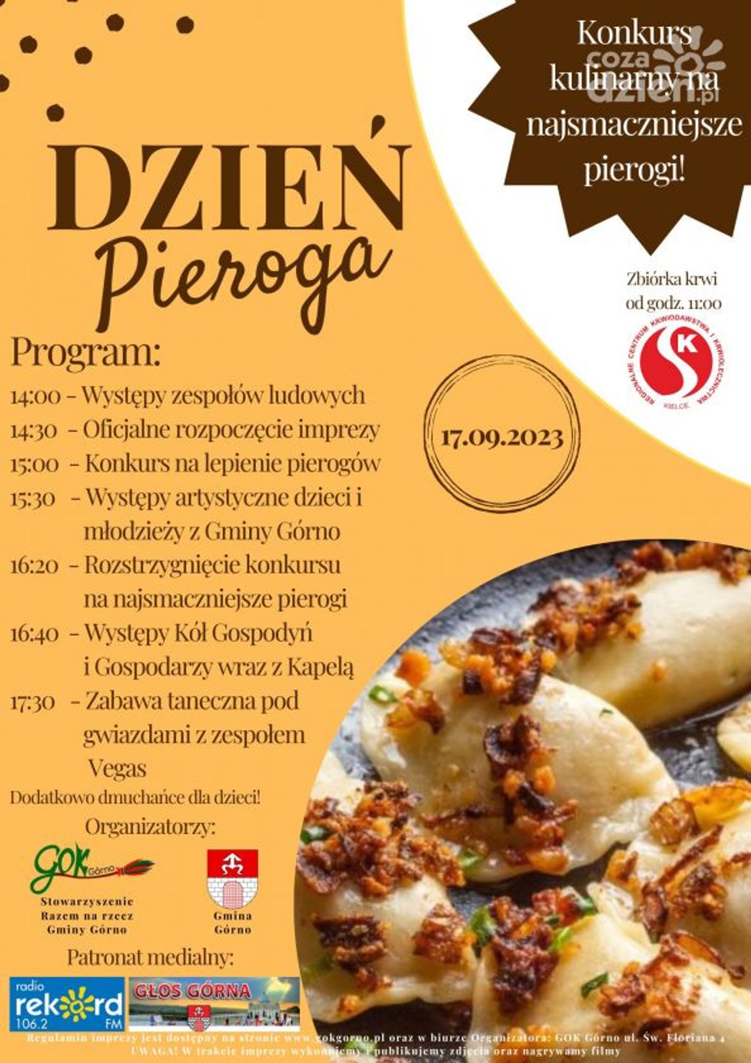 -Konkurs na Najsmaczniejsze Pierogi Gminy Górno: każdy może zgłosić swoje pierogi i daj się ocenić naszemu wymagającemu jury. Pamiętajcie, że obowiązuje ograniczona liczba miejsc w konkursie.