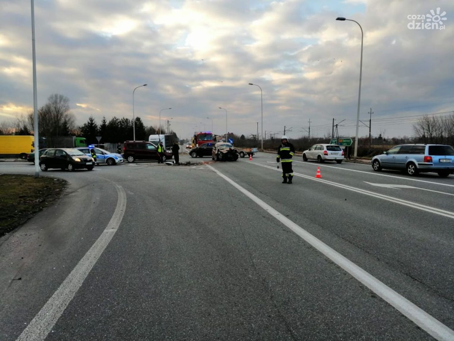 Obecnie ruchem na tym odcinku drogi kierują strażacy z policją. Utrudnienia mogą potrwać kilka godzin.