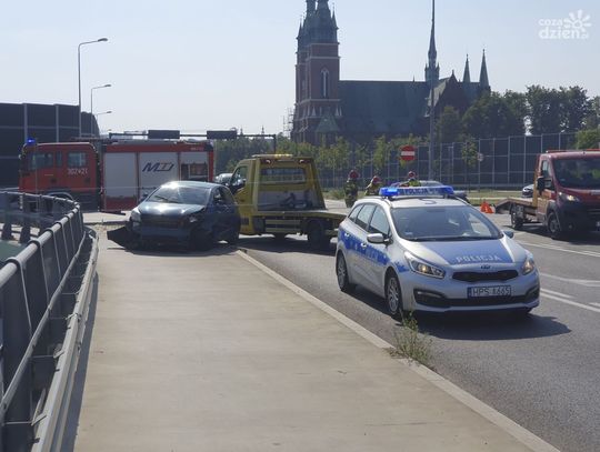 Kierująca Toyotą 34 - latka z urazem głowy i klatki piersiowej została zabrana do szpitala. Na miejscu pracują policyjni technicy. Zablokowany jest jeden pas ruchu. Utrudnienia potrwają do około godz. 11.30.