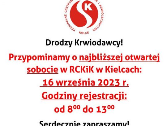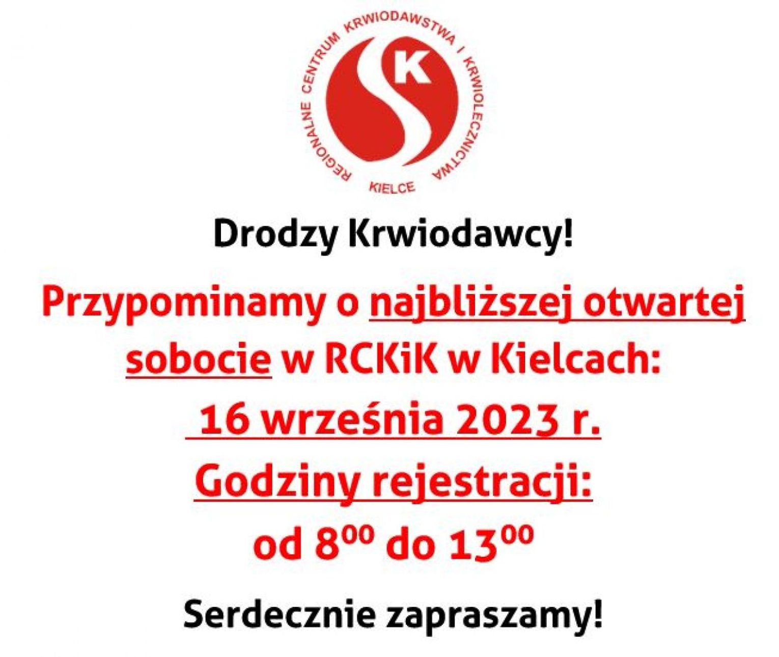 Krew w dni powszednie można też oddawać w oddziałach terenowych placówki, tj. w Końskich, Ostrowcu Świętokrzyskim, Sandomierzu oraz Skarżysku-Kamiennej.