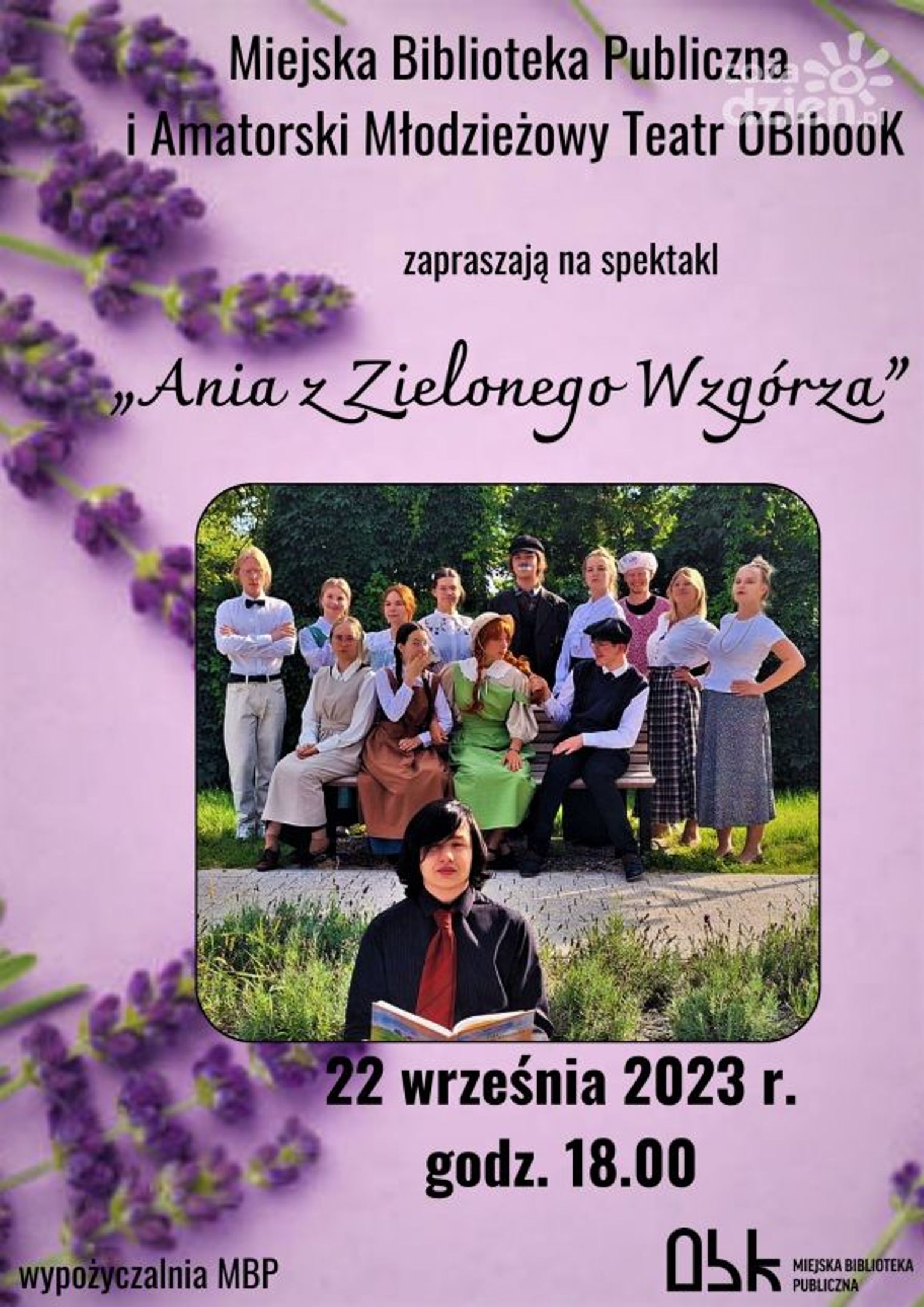 W najbliższy piątek 22 września Miejska Biblioteka Publiczna i Amatorski Młodzieżowy Teatr OBibooK zapraszają wszystkich chętnych na spektakl "Ania z Zielonego Wzgórza".