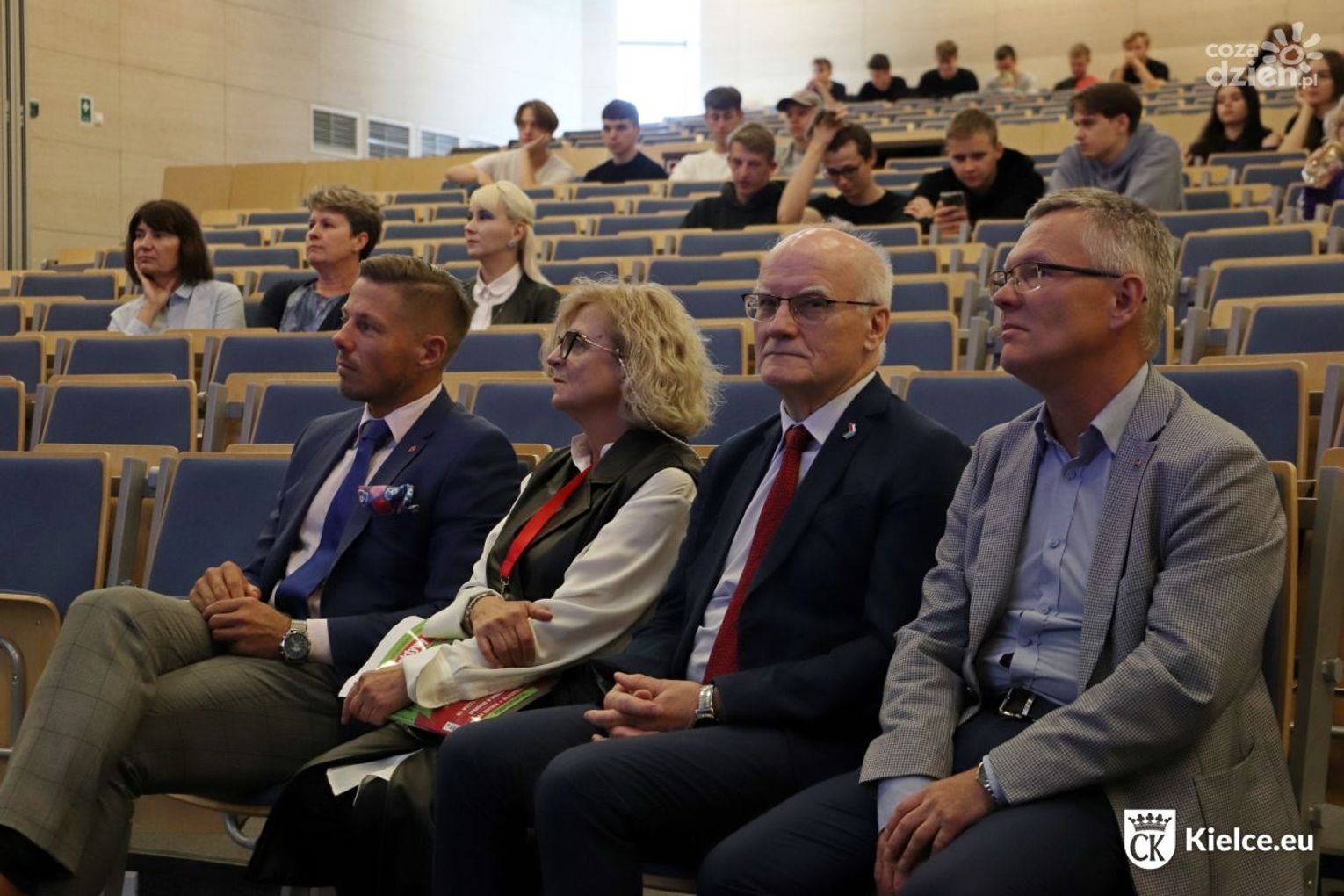 Tym czasem prof. dr hab. Artur Maciąg, prorektor ds. Studenckich i Dydaktyki PŚk podkreślił, że warto dziś wybrać na studiowanie Politechnikę, gdyż w całym kraju brakuje kilku tysięcy inżynierów. – Główny problem polega na tym, że młodzi ludzie obawiają się studiów inżynierskich ze względu na wysoki poziom. Zapewniam, że jeżeli macie chęci i determinację, możecie wszystko – zwrócił się do maturzystów.