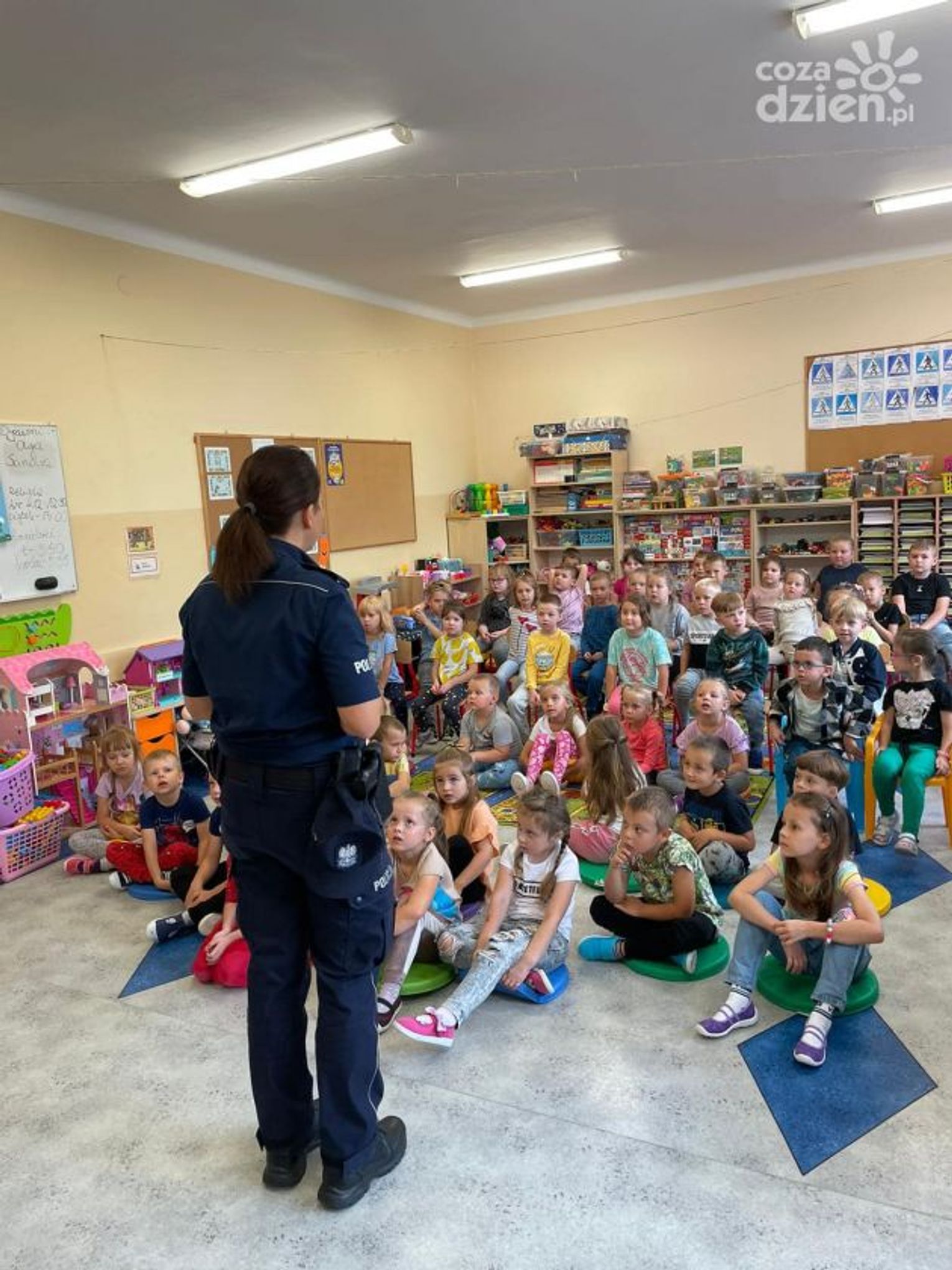 Niecodzienne zajęcia odbyły się w przedszkolu przy Szkole Podstawowej nr 5 w Jędrzejowie. Co robią policjanci na służbie, z czego składa się ich mundur, do czego służy numer alarmowy 112.