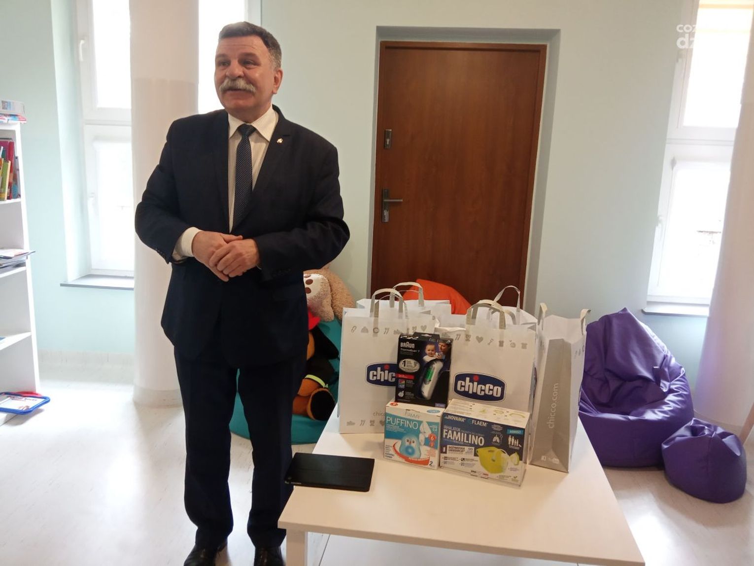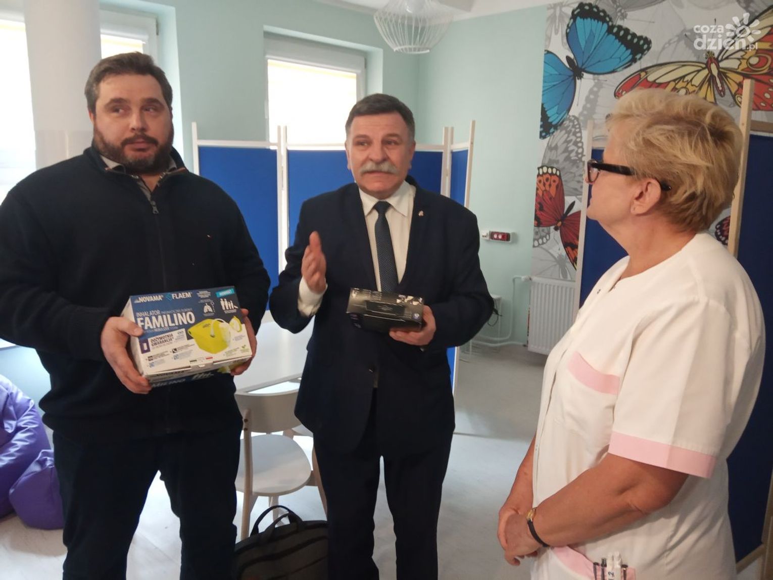 - Misją naszej firmy jest pomoc oddziałom dziecięcym w polskich szpitalach. Stąd dziś jestem w Ostrowcu Świętokrzyskim i przekazuje inhalatory i termometry, najwyższej jakości sprzęt z wieczystą gwarancją - mówi Rafał Staniszewski reprezentant firmy medycznej z Łodzi.