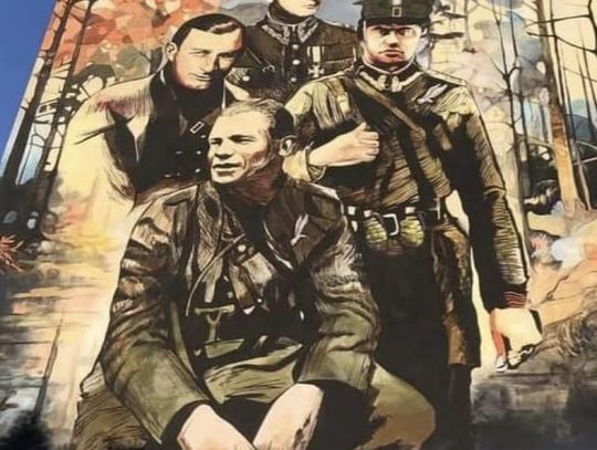 Mural przedstawia mjr. Henryka Dobrzańskiego ps. „Hubal", płk. Jan Piwnika ps. „Ponury", mjr. Eugeniusza Gedymina Kaszyńskiego ps. „Nurt " i kpt. Stanisława Pałaca ps. „Mariański”.