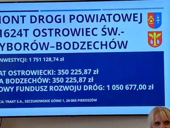 A wartość robót budowlanych wynosi 1, 7 mln zł z czego dofinansowanie z Rządowego Funduszu Rozwoju Dróg w wysokości 60%, stanowi ponad 1 milion zł. Pozostałą kwotę solidarnie po 350 tys. pokryją właśnie samorządy powiatowy i gminy Bodzechów.