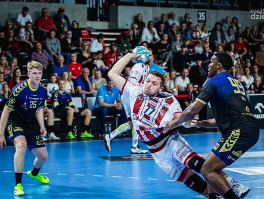 Pierwsza połowa spotkania niespodziewanie była bardzo wyrównana. Zespoły wymieniały się seriami trafionych rzutów. W zespole gospodarzy wyróżniał się Daniel Reznicky, który w pierwszej części spotkania zdobył aż 7 bramek. Mimo wszystko Mistrzowie Polski udźwignęli trudy pierwszej połowy i do szatni schodzili prowadząc 16:13. - W pierwszej połowie nasz atak był znacznie gorszy od naszej obrony. Naszą bolączką była skuteczność, bo dochodziliśmy do sytuacji sam na sam, ale nie mieliśmy wystarczająco zimnej krwi, żeby dobrze wykończyć akcje. Przez to bramkarz rywali odbijał nasze rzuty, a gospodarze pchali piłkę do przodu i wyprowadzali kontrataki. W obronie z kolei nie mogliśmy upilnować obrotowego rywali, który lubi dużo biegać dostawał dużo poda. - mówił Krzysztof Lijewski, drugi trener Industrii Kielce.