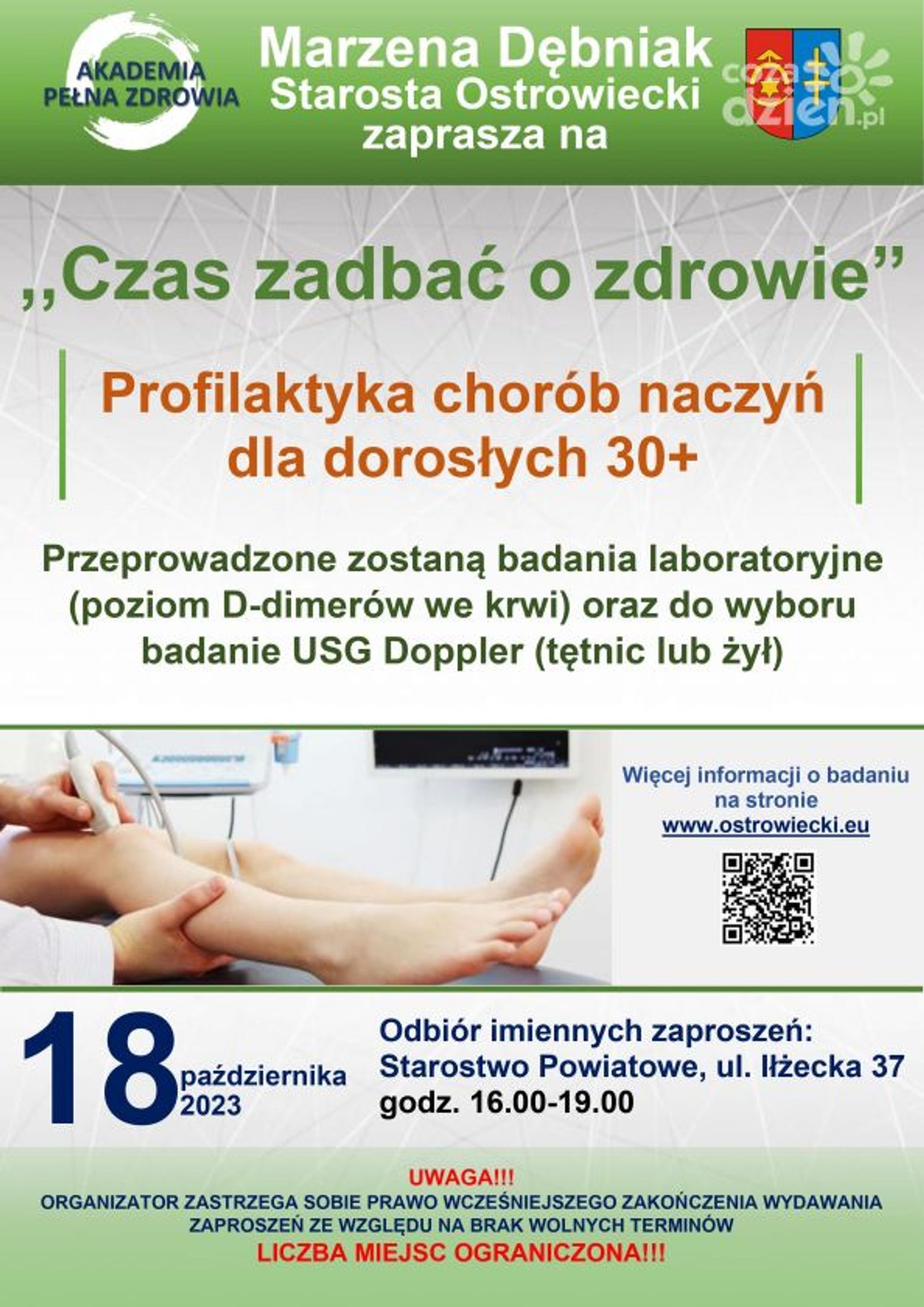 Badania przeprowadzone będą w ramach akcji Akademia Pełna Zdrowia, którą od kilku lat realizuje powiat ostrowiecki.