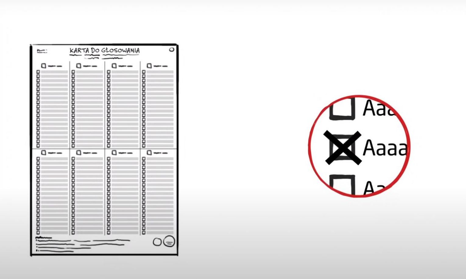 W lokalach otrzymamy dwie jednostronicowe karty, jedną do sejmu, jedną do senatu . Aby oddać ważny głos na kartach do sejmu i senatu stawiamy tylko jeden znak X przy jednym kandydacie, jeden na karcie do Sejmu i jeden na karcie do Senatu.