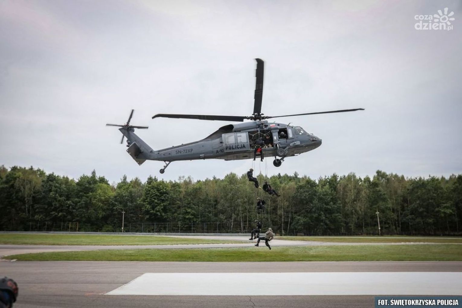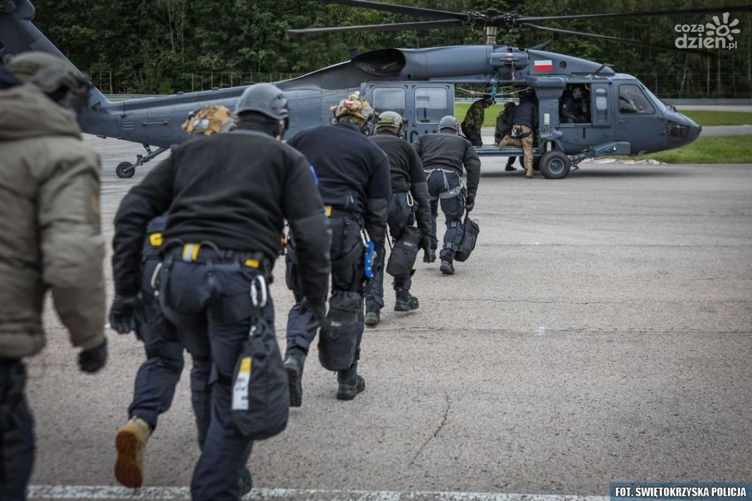 - Niezwykle istotne było także błyskawiczne działanie, po uniemożliwieniu kontynuowania jazdy zatrzymywanej osoby - relacjonował podkom. Damian Janus z KWP w Kielcach. . Kolejny, bardzo widowiskowy element poniedziałkowych ćwiczeń to udział policyjnego śmigłowca, podczas których piloci wykazywali się kunsztem i niezwykłą precyzją. Natomiast zadaniem policjantów był desant z pokładu maszyny przy użyciu liny osobistej oraz tzw. szybkiej. Ostatni z elementów wykonywanych w trakcie tego dnia, to zatrzymanie pojazdu przy asyście śmigłowca.