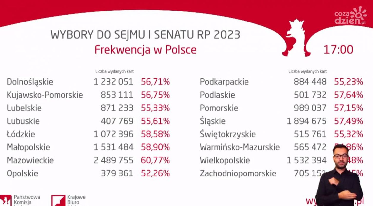 Najwyższa i najniższa frekwencja na godz. 17.00