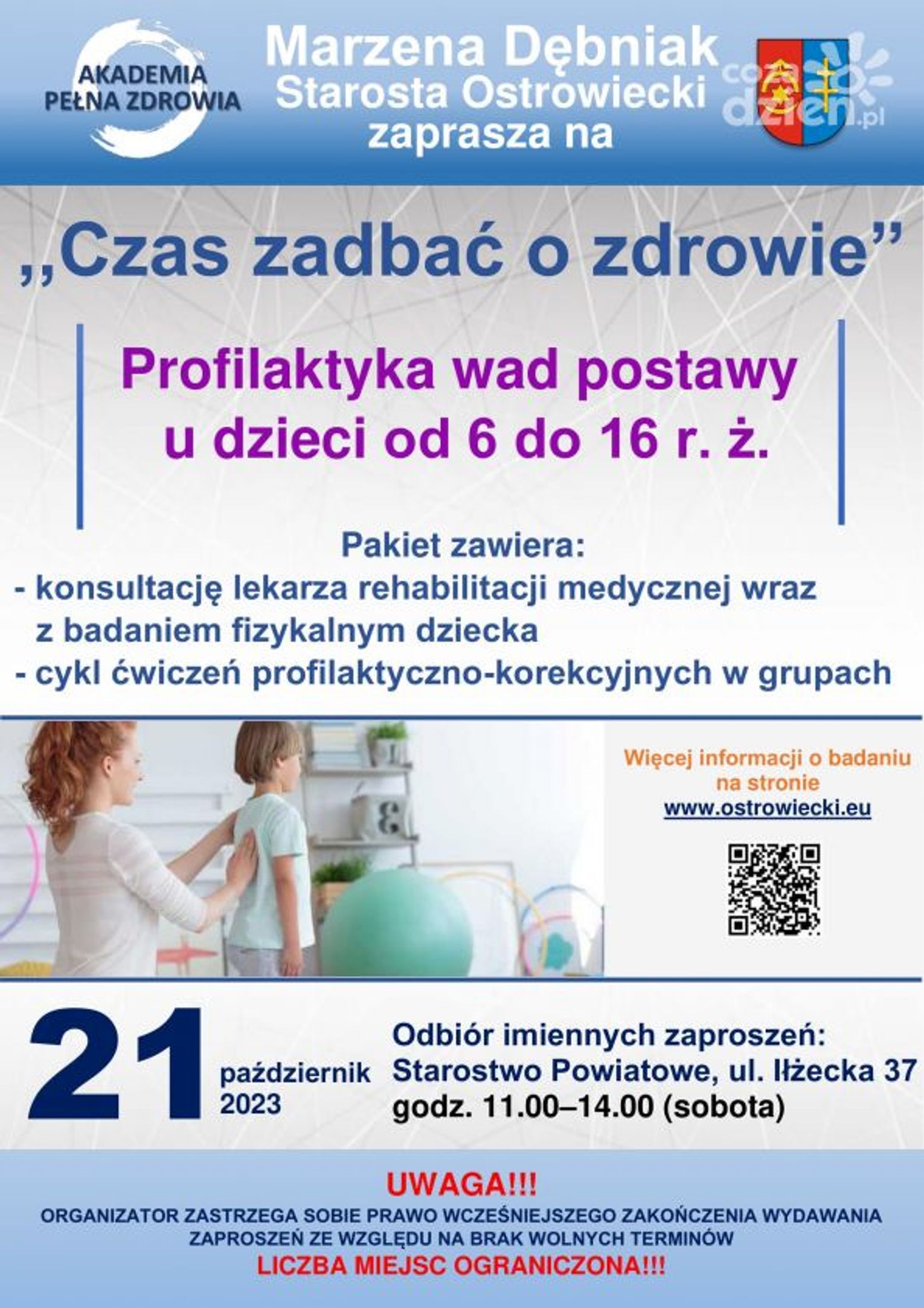 Osobisty odbiór zaproszeń odbędzie się w sobotę 21 października od godziny 11.00 do 14.00 w Starostwie Powiatowym w Ostrowcu Świętokrzyskim, ul. Iłżecka 37.