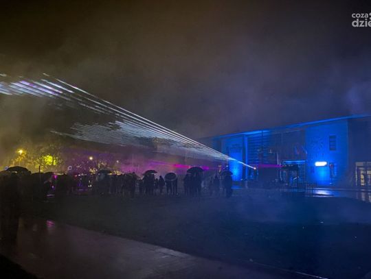 Punkt kulminacyjny wydarzenia - niesamowity pokaz laserów rozświetlił plac Centrum Samorządowego milionem kolorów. Oprawa muzyczna, pokazy pirotechniczne oraz spadające krople deszczu, które w świetle przypominały diamenty nadały spektaklowi jeszcze bardziej wyjątkowego charakteru.