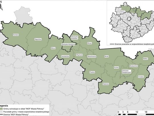 A na mocy Porozumienia Międzygminnego aż 17 samorządów północy województwa świętokrzyskiego zobowiązało się do opracowania dokumentów strategicznych określających wzajemne powiązania i komplementarne cele, kierunki rozwoju oraz zasady współpracy jako miasta i obszary tracące swoje dotychczasowe funkcje społeczno-gospodarcze. Dokument nosi nazwę Strategia Zintegrowanych Inwestycji Terytorialnych Miejskiego Obszaru Funkcjonalnego Miasta Północy oraz Planu Zrównoważonej Mobilności Miejskiej „MOF Miasta Północy”.