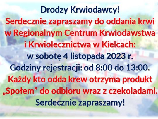 Regionalne Centrum Krwiodawstwa i Krwiolecznictwa w Kielcach znajduje się na ul. Jagiellońskiej 66, w centrum istnieje także możliwość oddania osocza.