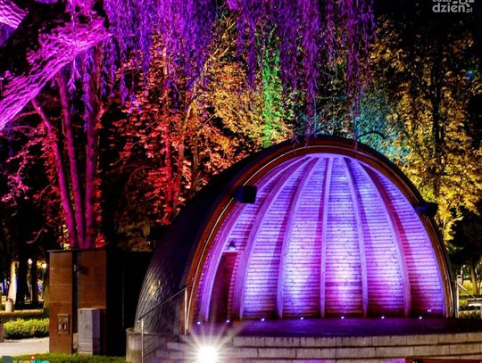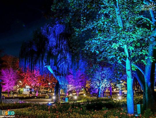 "Park światłem i dźwiękiem malowany" to niezwykły spektakl, który nocą zamienia przestrzeń parku w magiczną krainę barw i dźwięków. Oświetlone drzewa, krzewy i alejki ukazują swoje piękno w zupełnie nowym świetle tworząc prawdziwą ucztę dla zmysłów. Podświetlone pnie drzew delikatnie pulsują, jakby oddychały, nadając parkowi wręcz tajemniczy wyraz. Kaskady światła spływają po liściach, odbijając się od nich i tworząc magiczny krajobraz blasku i refleksów. Ścieżki parkowe wiją się jak smugi barw, prowadząc spacerujących po tego niezwykłego parku.