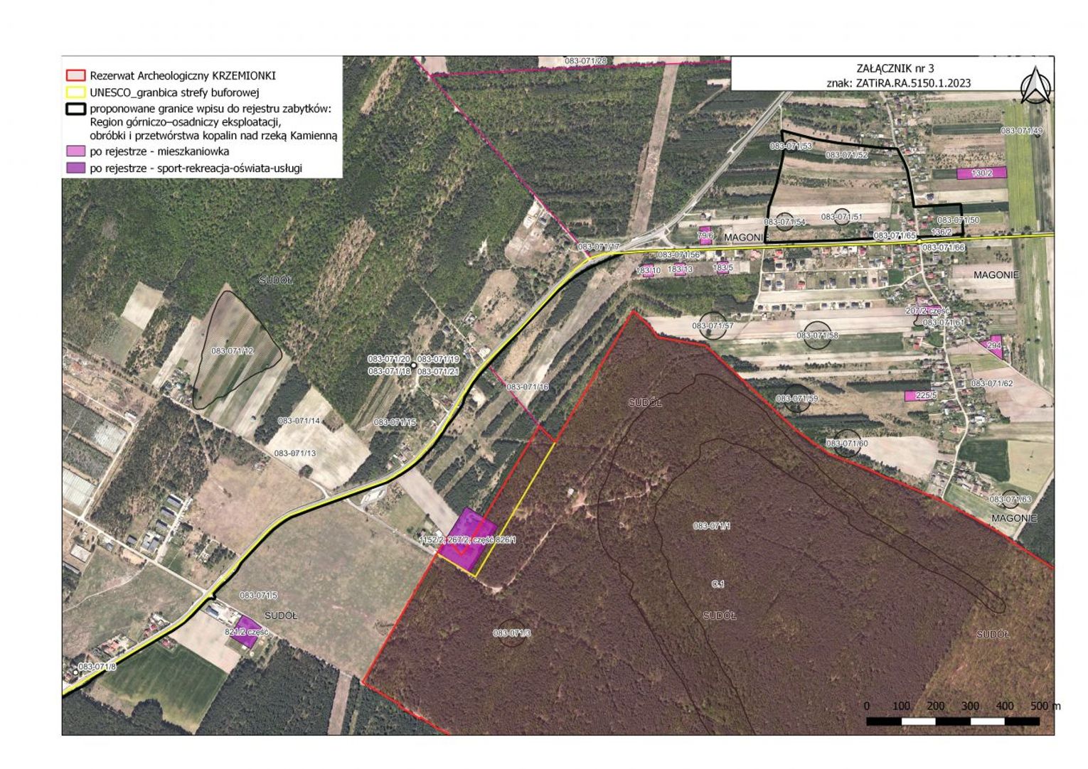 Są pierwsze ustalenia dotyczące wyznaczenia granic wokół znajdujących się na liście UNESCO neolitycznych kopalni krzemienia pasiastego i wpisania ich części do rejestru zabytków. Wpis na prestiżową listę neolitycznych kopalni wymaga szczególnej ochrony także terenów sąsiadujących z zabytkiem. Niestety koliduje to z wieloma planami właścicieli gruntów na terenie gminy Bodzechów sąsiadujących z rezerwatem Krzemionki. Po wielomiesięcznych negocjacjach świętokrzyski konserwator zabytków oraz przedstawiciel ministerstwa kultury przedstawili mieszkańcom możliwości dalszej rozbudowy i zagospodarowania obszaru objętego wpisem.