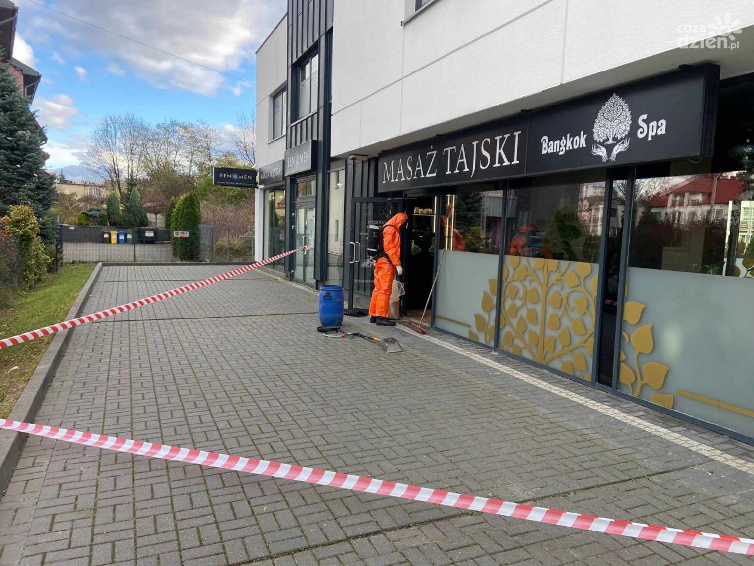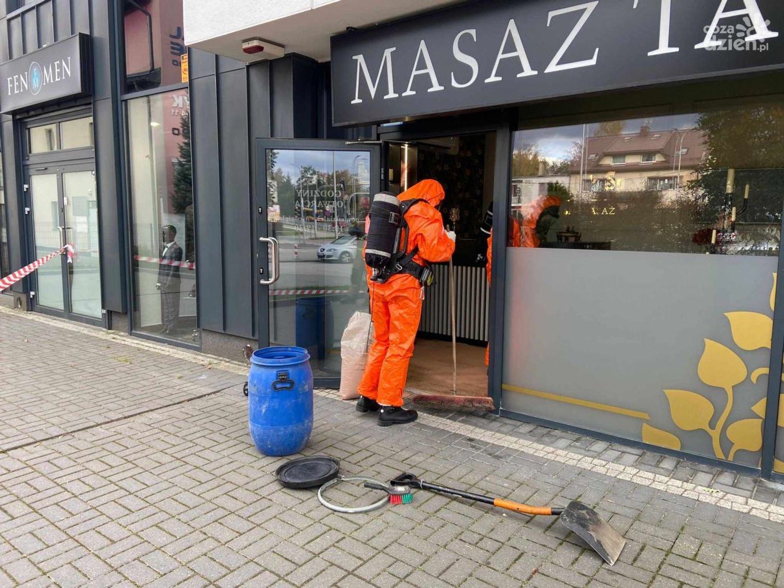Przed salonem masażu w Kielcach na ul. Ściegiennego rozlano oleistą substancję o drażniącym zapachu.