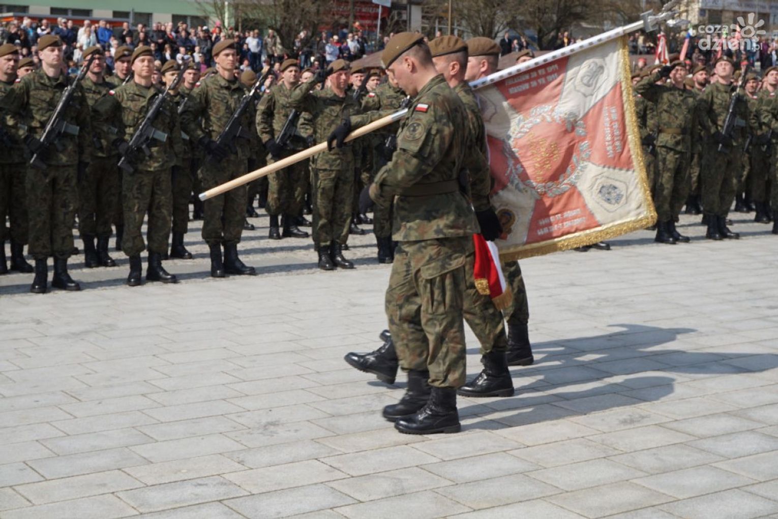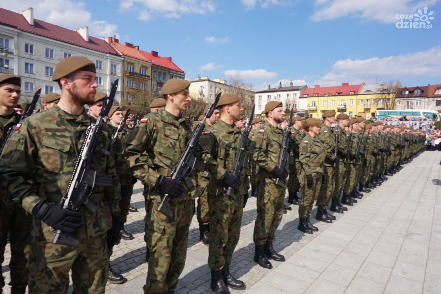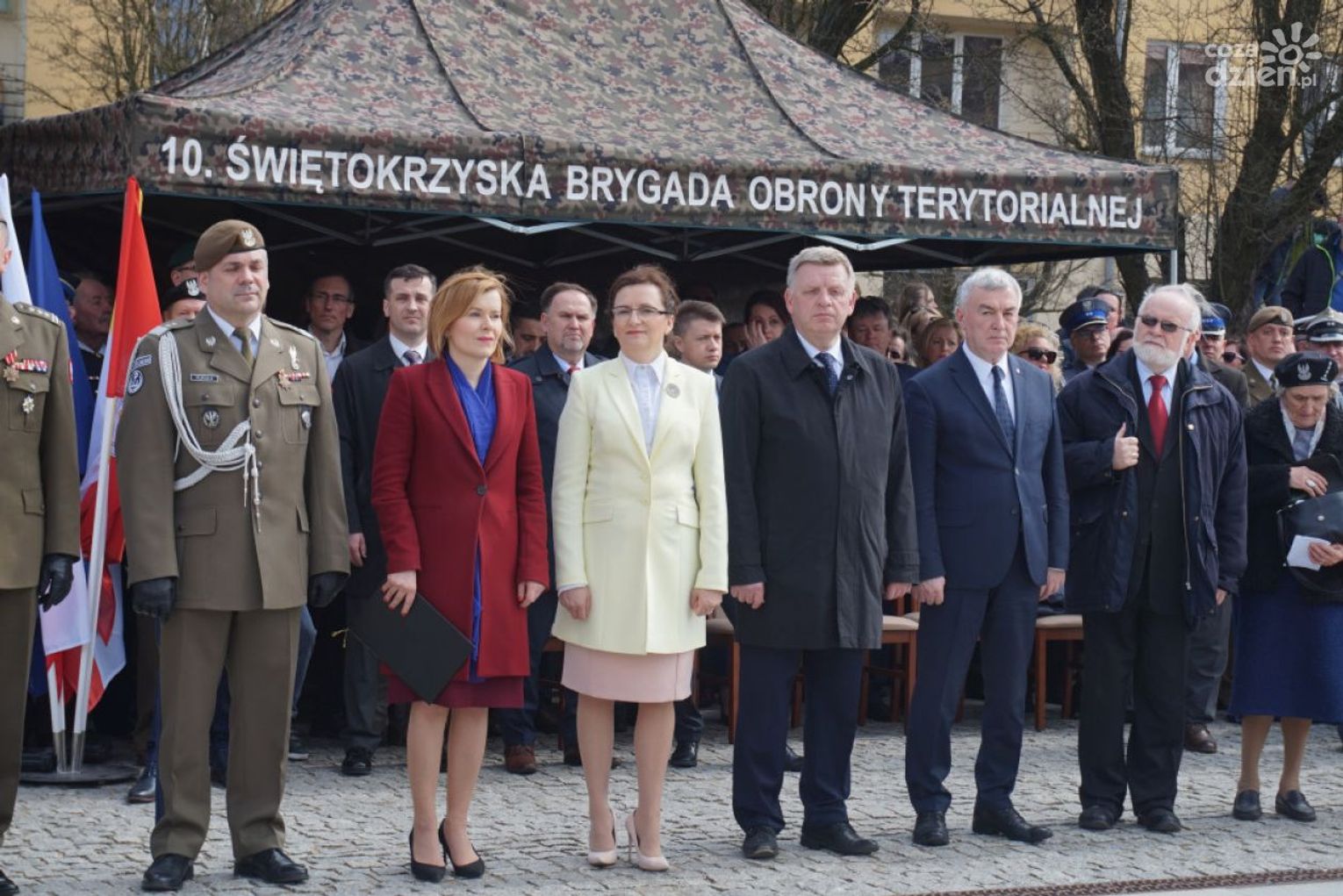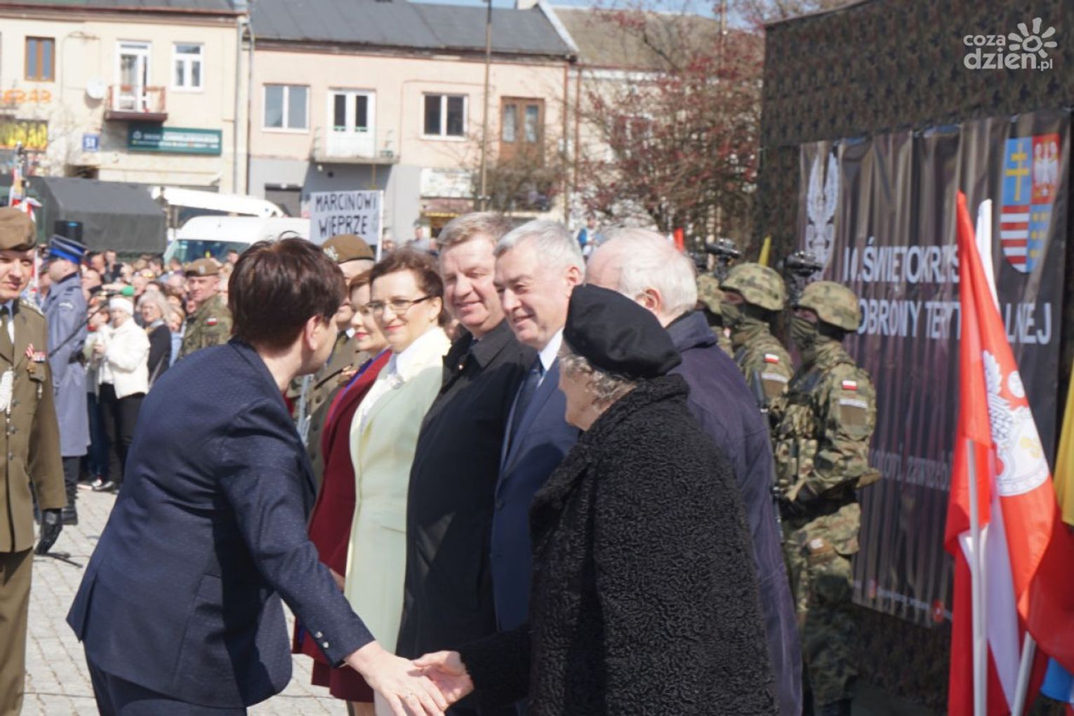 – Dołączyliście do szeregów polskiego wojska, jednocześnie nawiązując do pięknej tradycji poprzednich pokoleń, tradycji waszych dziadów, waszych ojców, tradycji tej ziemi – zwróciła się do żołnierzy B. Szydło. – Dołączyliście do elitarnej grupy, na której ciąży odpowiedzialność za Polskę, za jej bezpieczeństwo. Stajecie dzisiaj w równym szeregu z tymi, którzy gotowi są ponieść najwyższą cenę, broniąc ojczyzny, naszego domu. Ale wojska obrony terytorialnej to jest także służba lokalnej wspólnocie, waszym sąsiadom, rodzinom, bliskim, tej ziemi.
