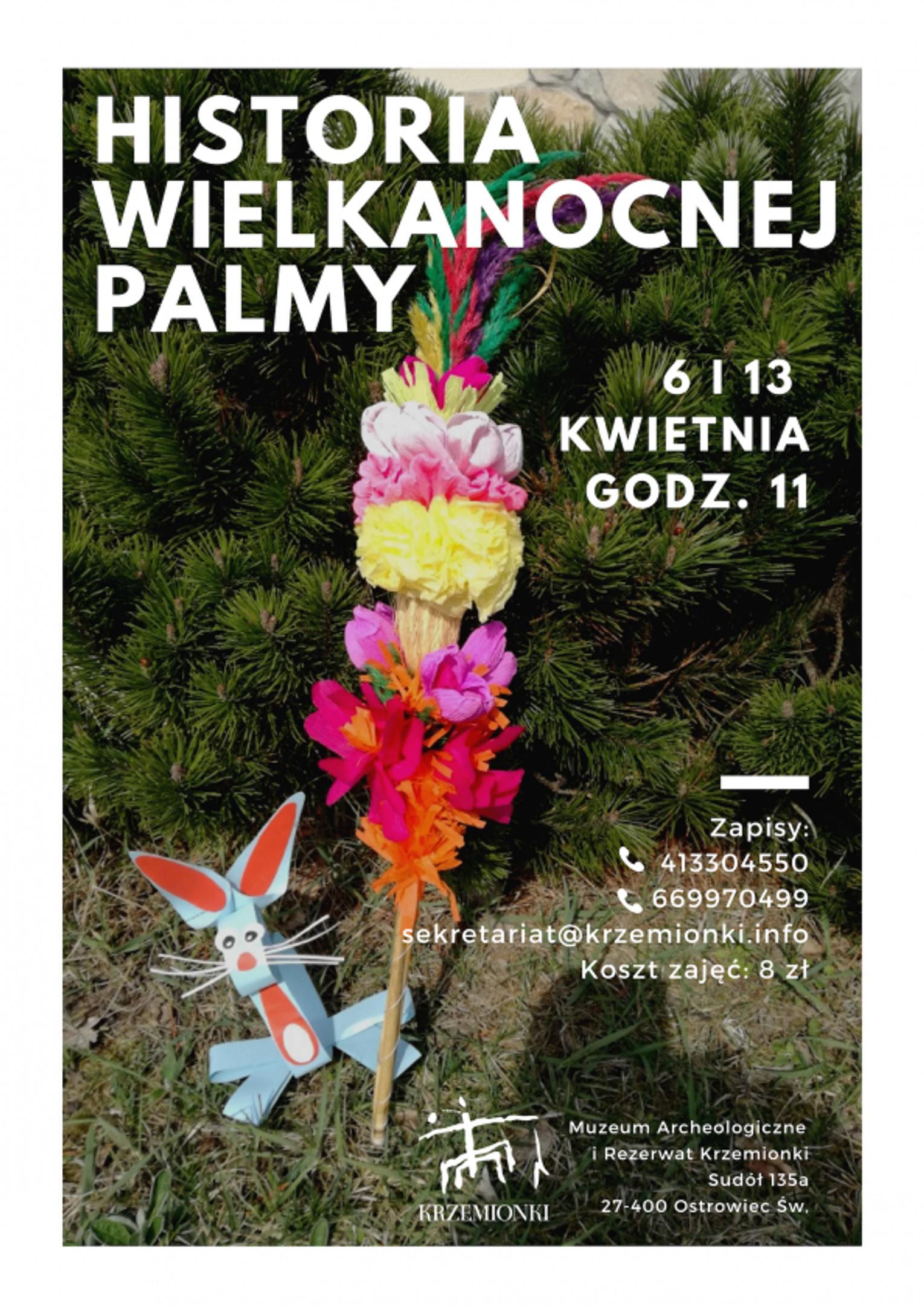 Zajęcia odbędę się w sobotę, 6 i 13 kwietnia o godz. 11, w siedzibie muzeum (Sudół 135A). Podczas warsztatów uczestnicy dowiedzą się, skąd wziął się zwyczaj święcenia palm w Niedzielę Palmową oraz jak powinna wyglądać wielkanocna palma. W części warsztatowej, każdy będzie miał możliwość wykonania własnej, niepowtarzalnej, oryginalnej palmy.